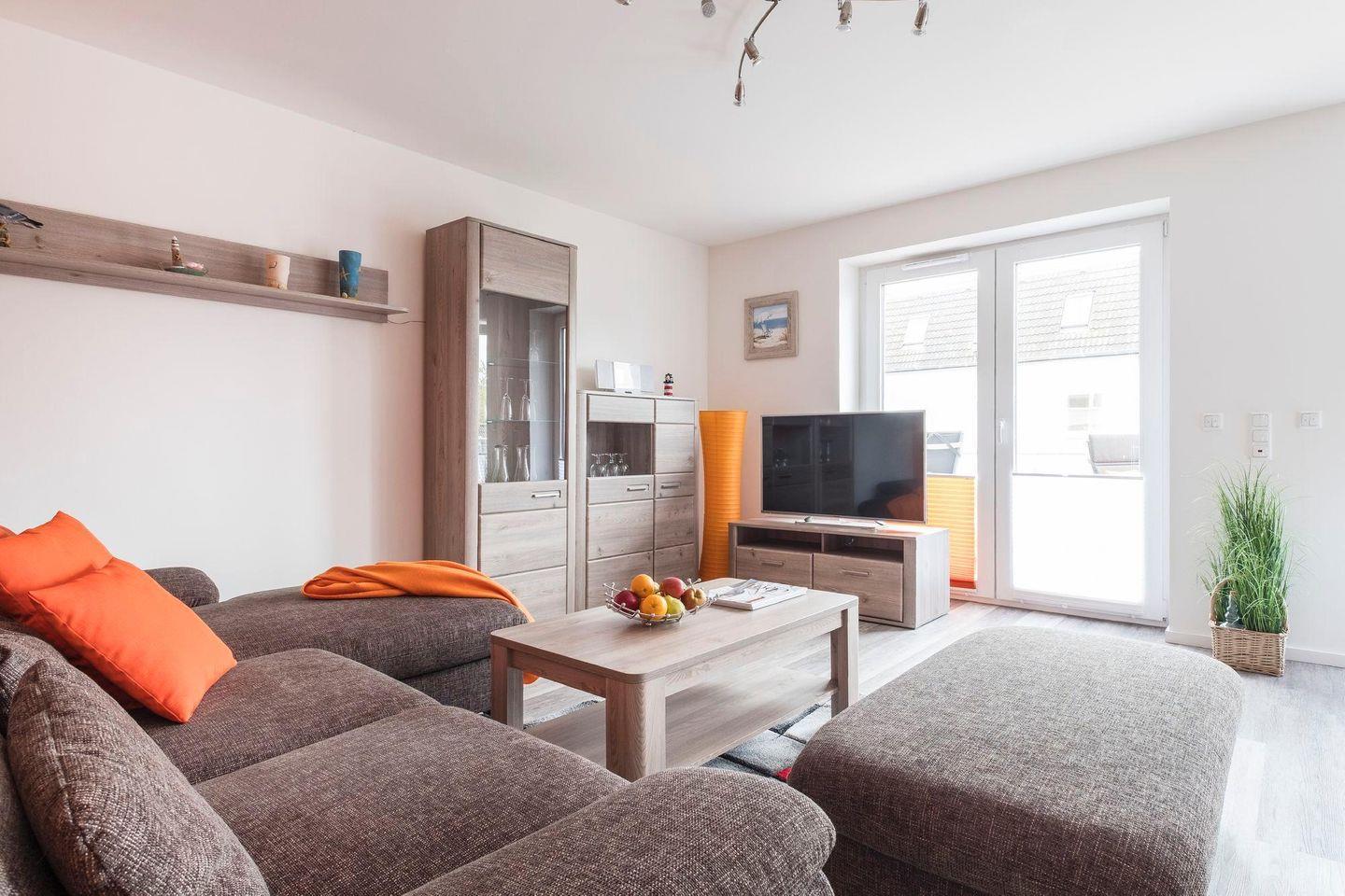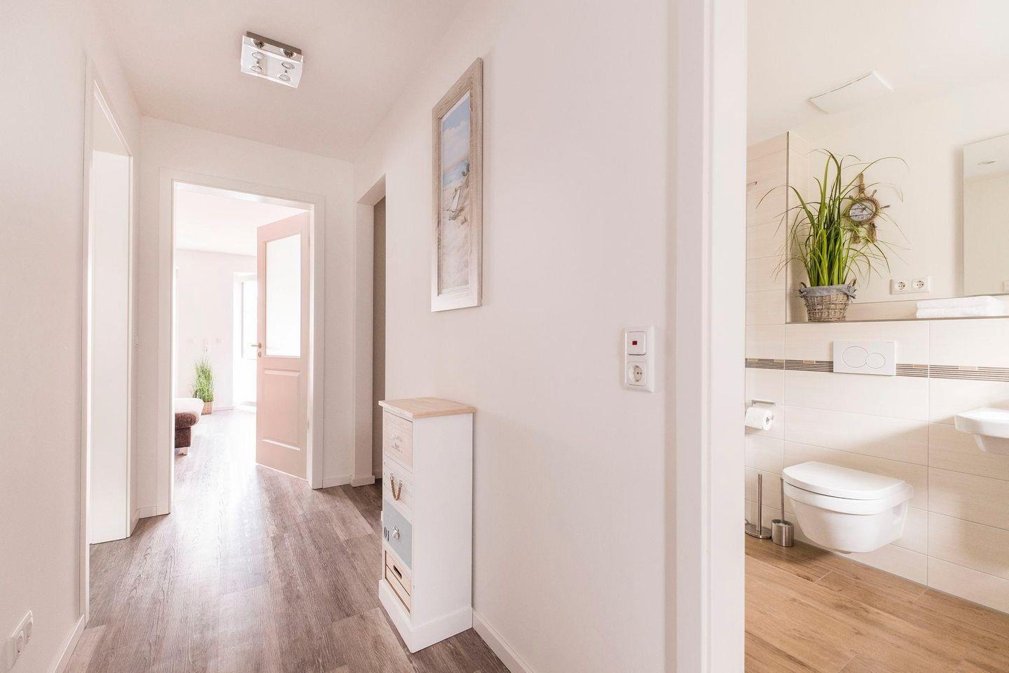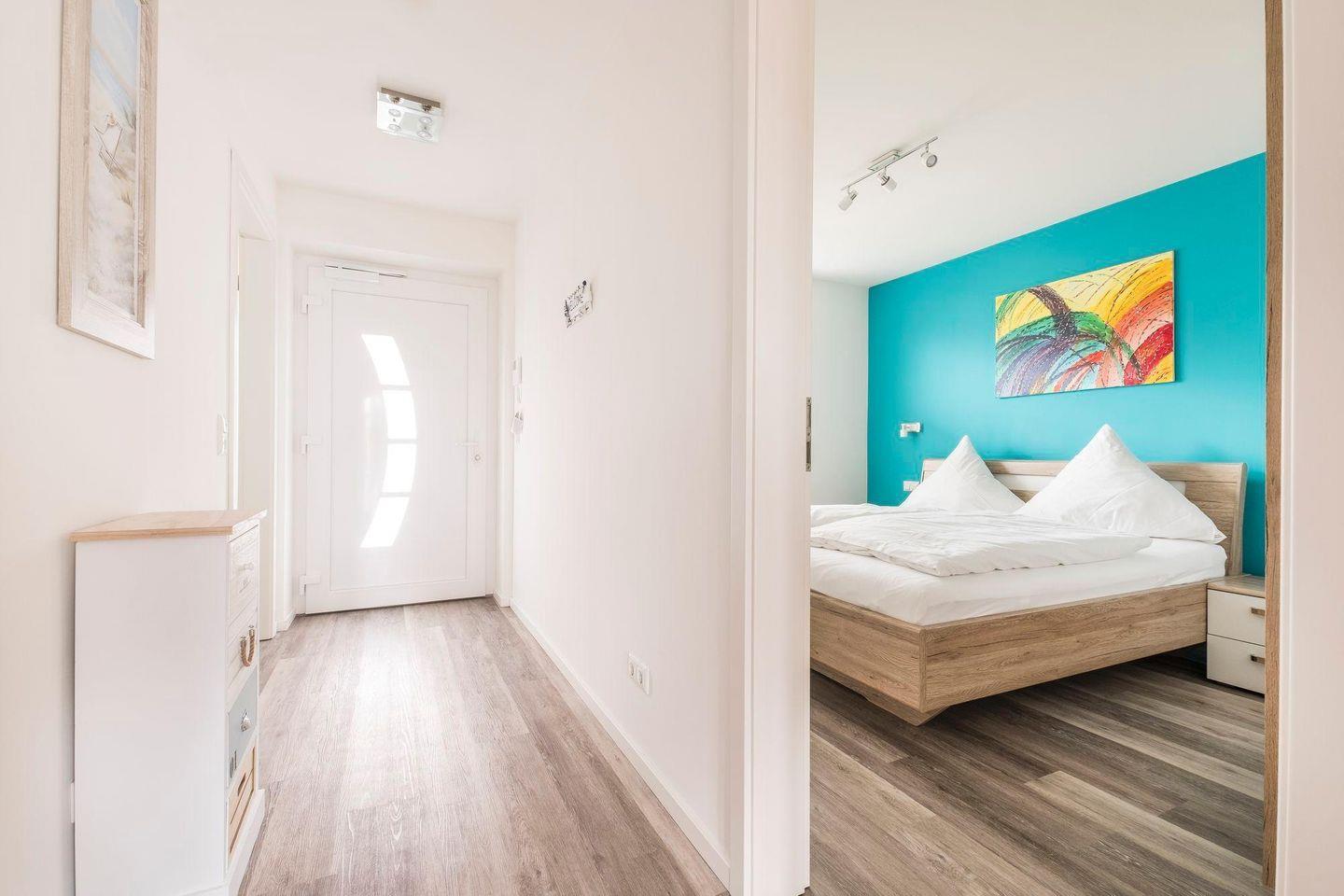 Die Ferienwohnung 2.4 ist eine moderne, farbenfrohe 2-Raum-Wohnung mit Balkon. Die Küchenzeile und der Essbereich sind direkt im Wohnbereich integriert. Das Bad verfügt über eine ebenerdige Dusche, WC, Handtuchtrockner und Haar-Föhn. Vom Wohnbereich gelangen Sie direkt auf den Balkon.