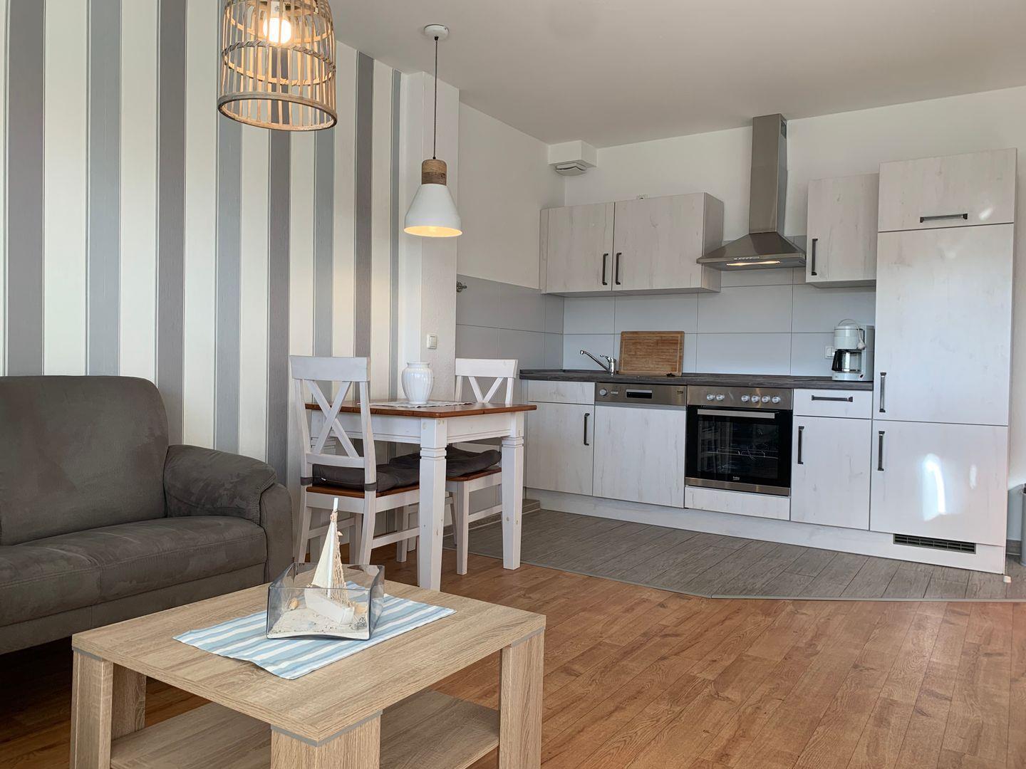 1 Wohnzimmer mit Essbereich, eine kleine Küchenzeile, 1 Schlafzimmer und 1 Duschbad