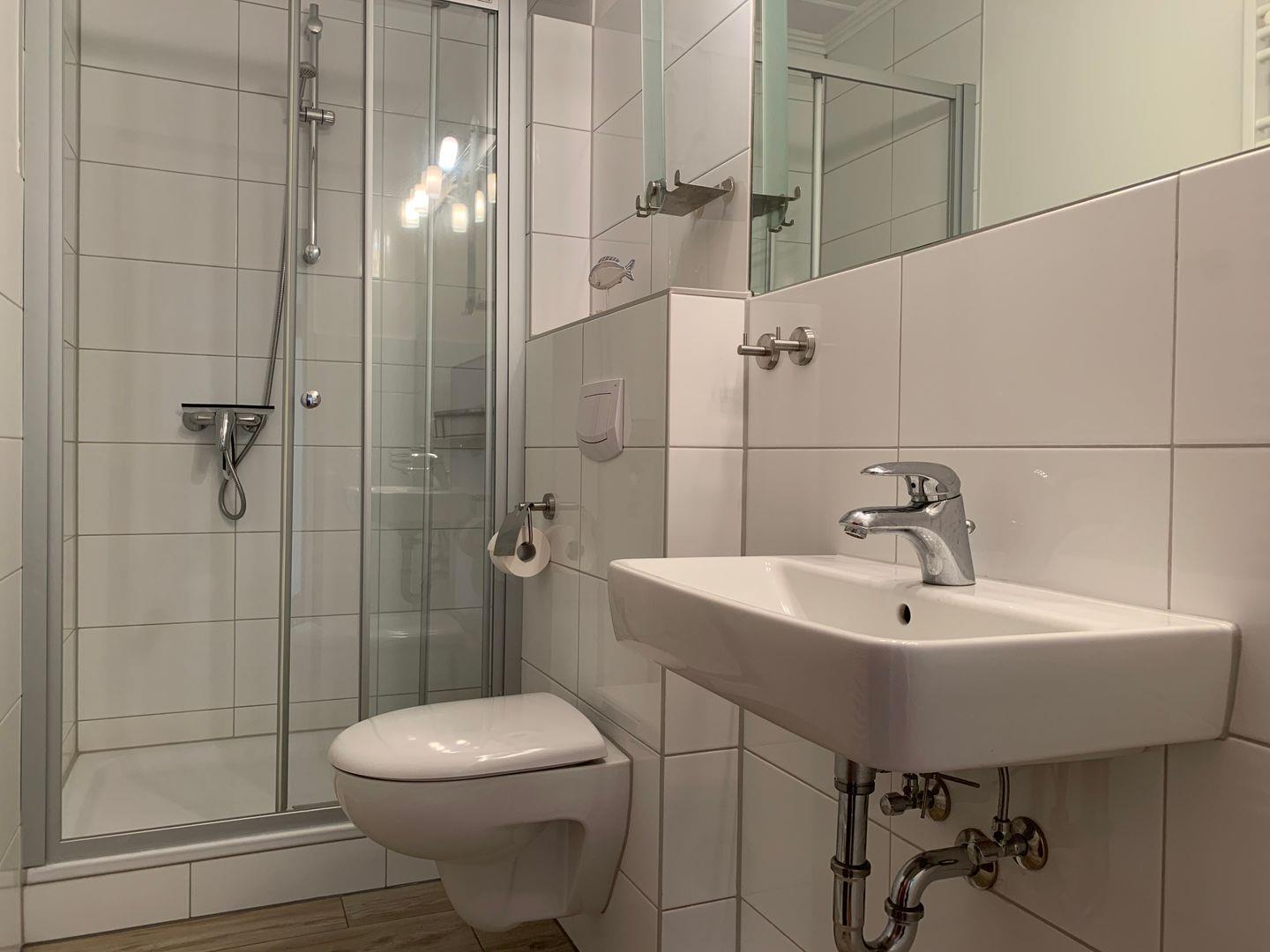 Das Bad verfügt über eine Dusche/WC. Vom Wohnbereich gelangen Sie auf den Balkon. Das eine Schlafzimmer verfügt über ein Doppelbett, das zweite Schlafzimmer über 2 Einzelbetten. Der Wohnung ist ein PKW - Stellplatz direkt am Haus zugehörig.