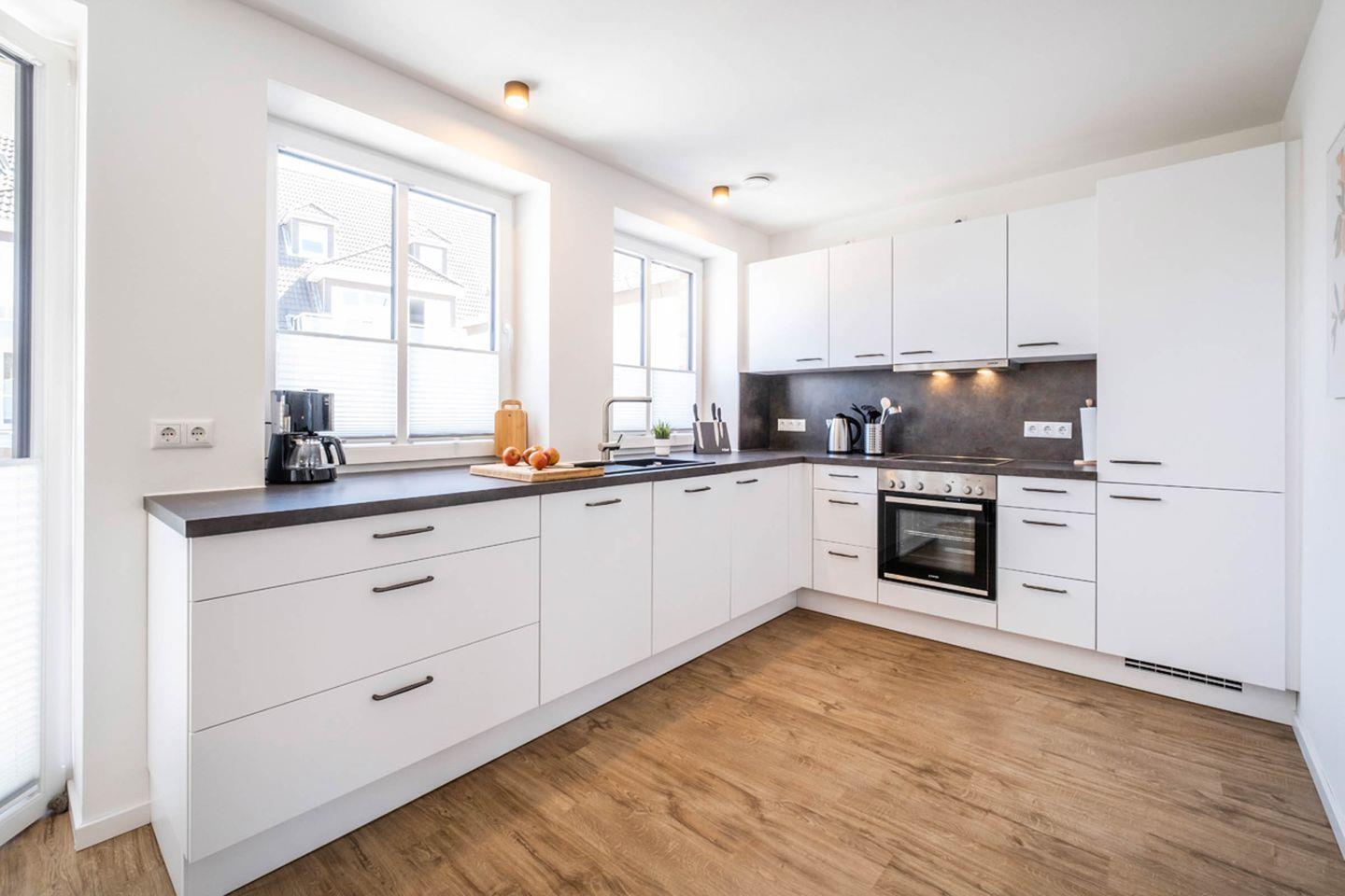 Haus Hummerklippe Apartment 4 in Büsum bietet auf 82 m² ein komfortables Ambiente mit zwei Schlafzimmern, einem offenen Wohn- und Essbereich sowie Balkon. Die moderne Ausstattung umfasst unter anderem Spülmaschine, WLAN, bodengleiche Dusche und Fußbodenheizung. Familienfreundlich und nur 250 m vom Strand entfernt.