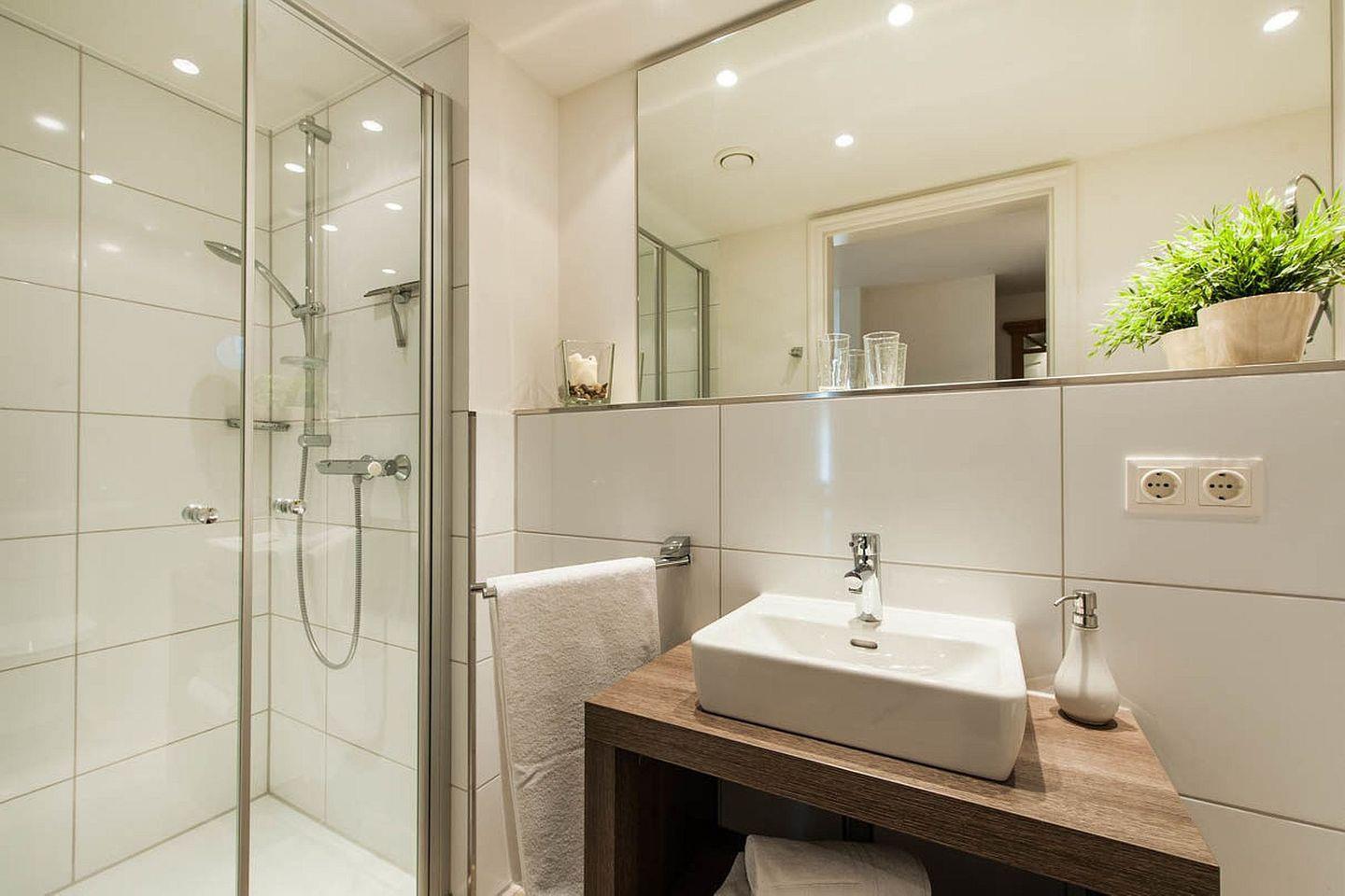 1. Bad / Walk-In-Regendusche, Handtuchwärmer, Föhn, Kosmetikspiegel