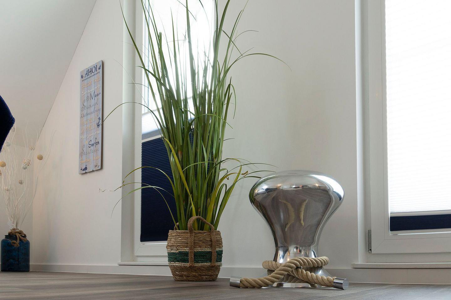 Alle Fenster der Seeluft verfügen über Plissees, in den Schlafräumen sind Verdunklungsvorhänge, sowie Insektenschutz an jeweils einem Fenster der Schlafzimmer angebracht.