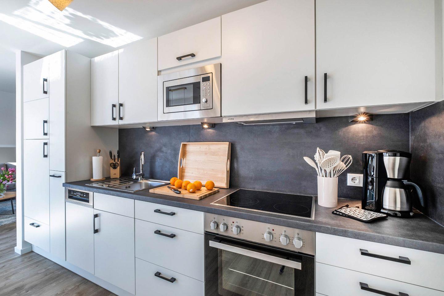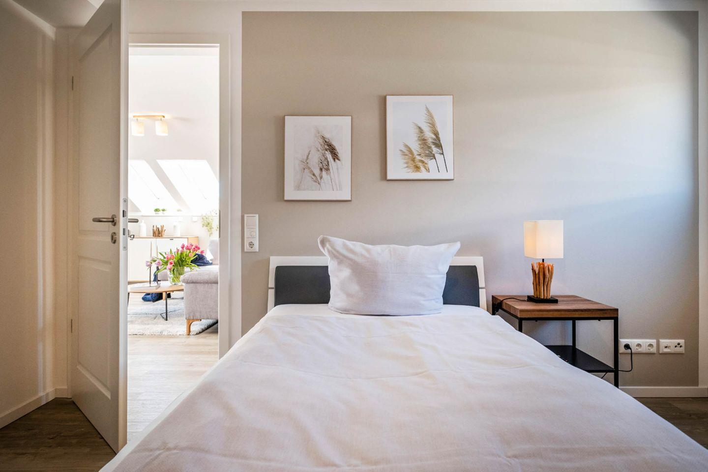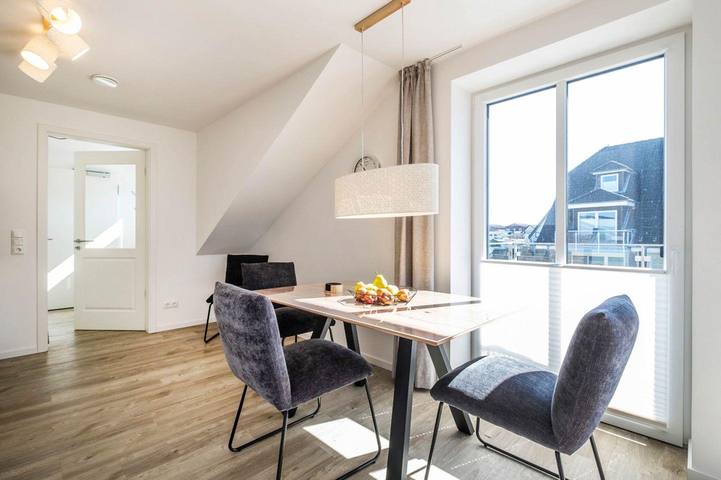 Das Apartment 6 bietet mit 2 Schlafzimmern Platz für 3 Personen. Des Weiteren verfügt das Apartment über einen Wohn- und Essbereich mit einer offenen Küche. Das Tageslichtbad ist mit einer bodentiefen Dusche ausgestattet.