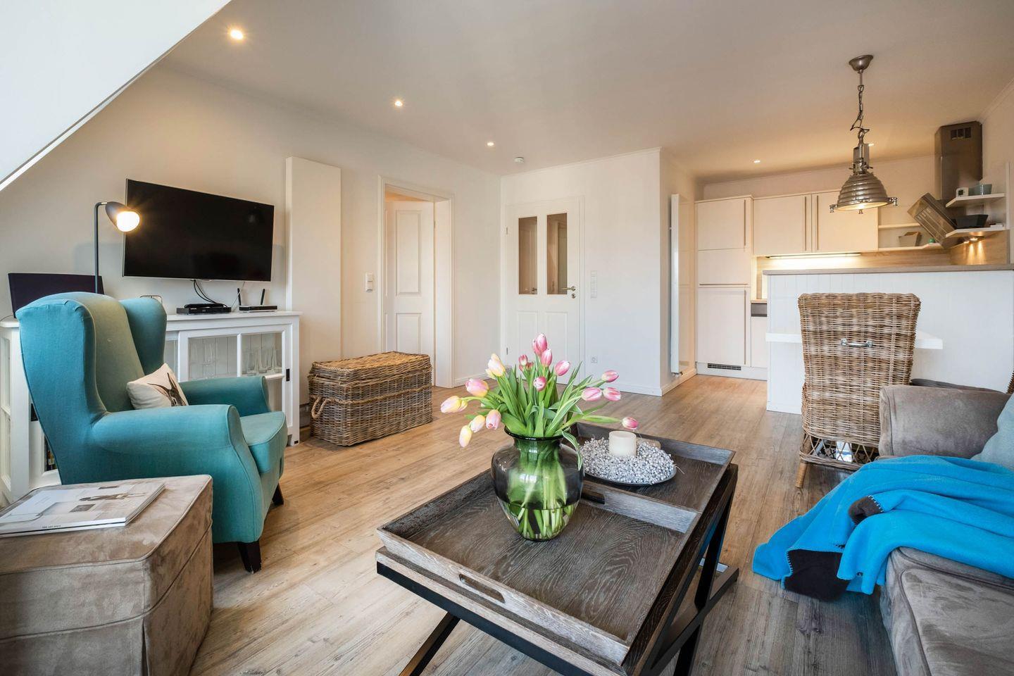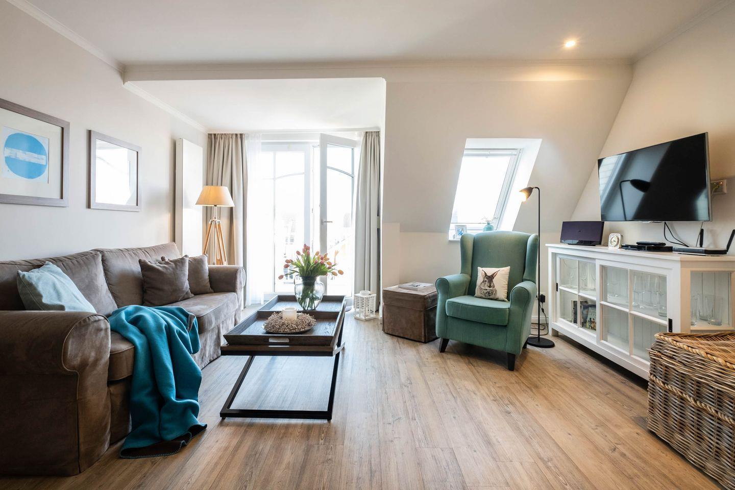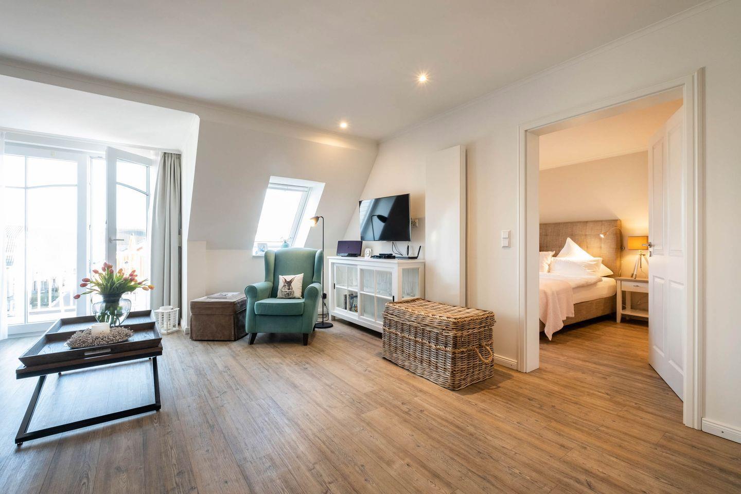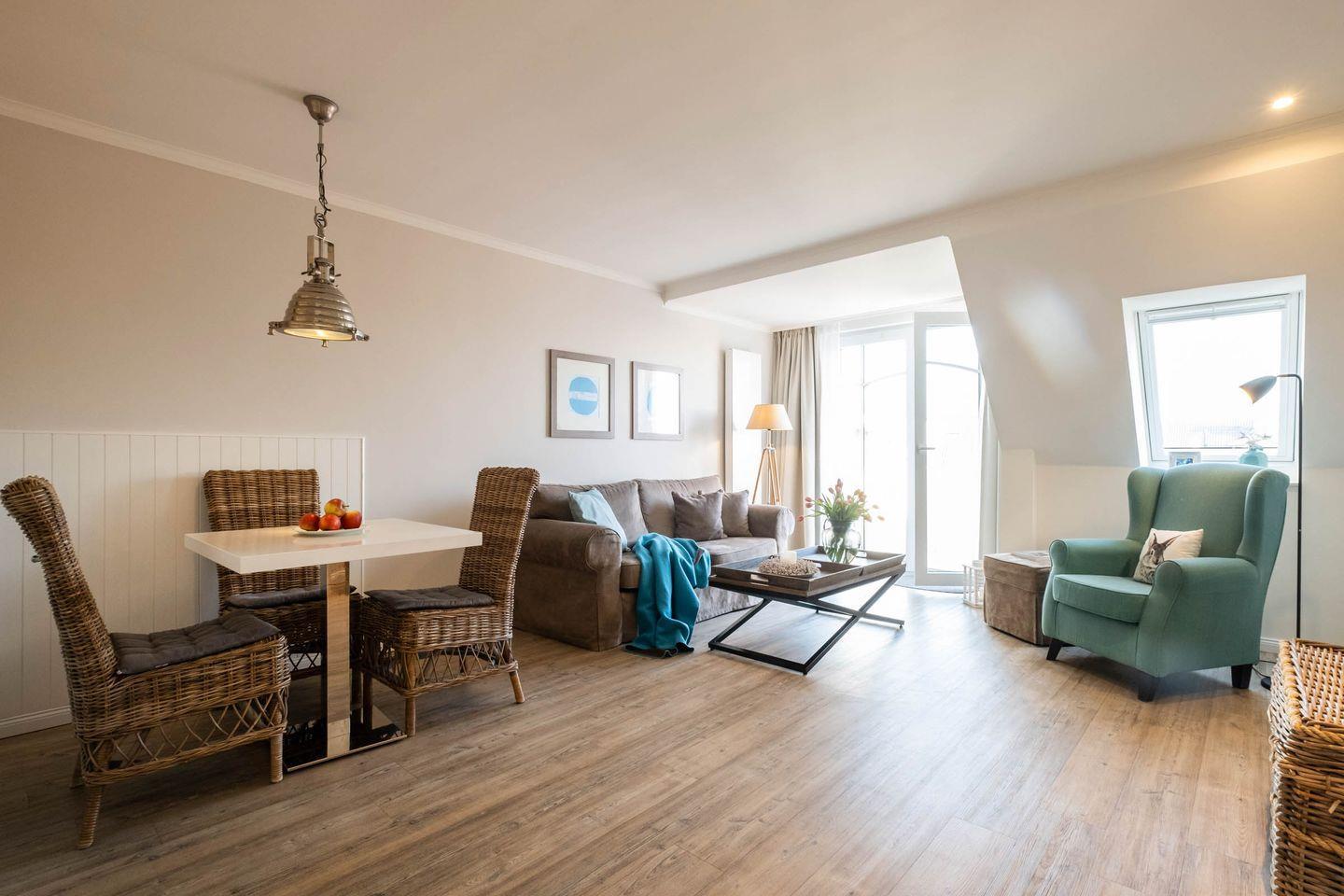 Das 52 m² Apartment ist geeignet für 2 Personen und befindet sich in dem Haus "Weisse Villa" direkt am Büsumer Hafen.