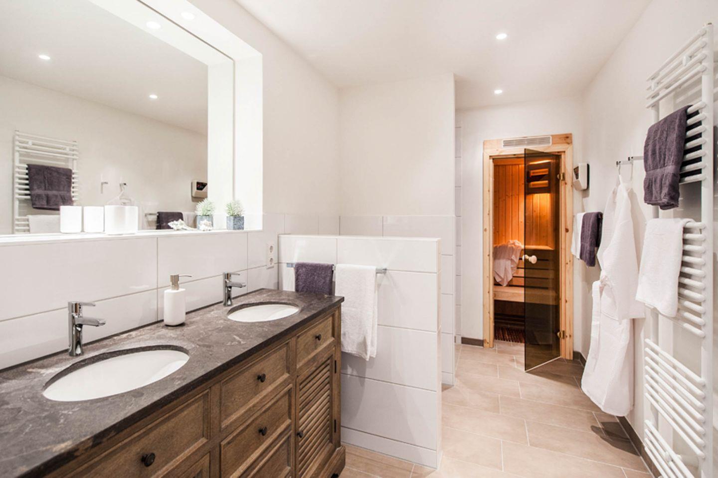 - 1. Bad: Walk-in-Dusche, Handtuchwärmer, Föhn, Kosmetikspiegel, Doppelwaschtisch