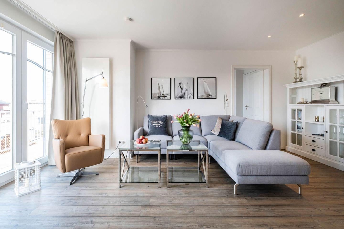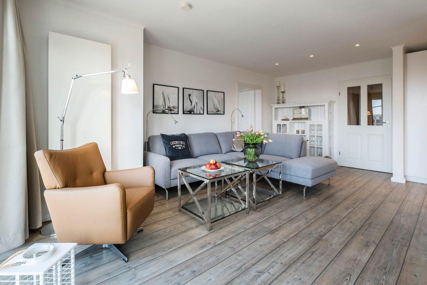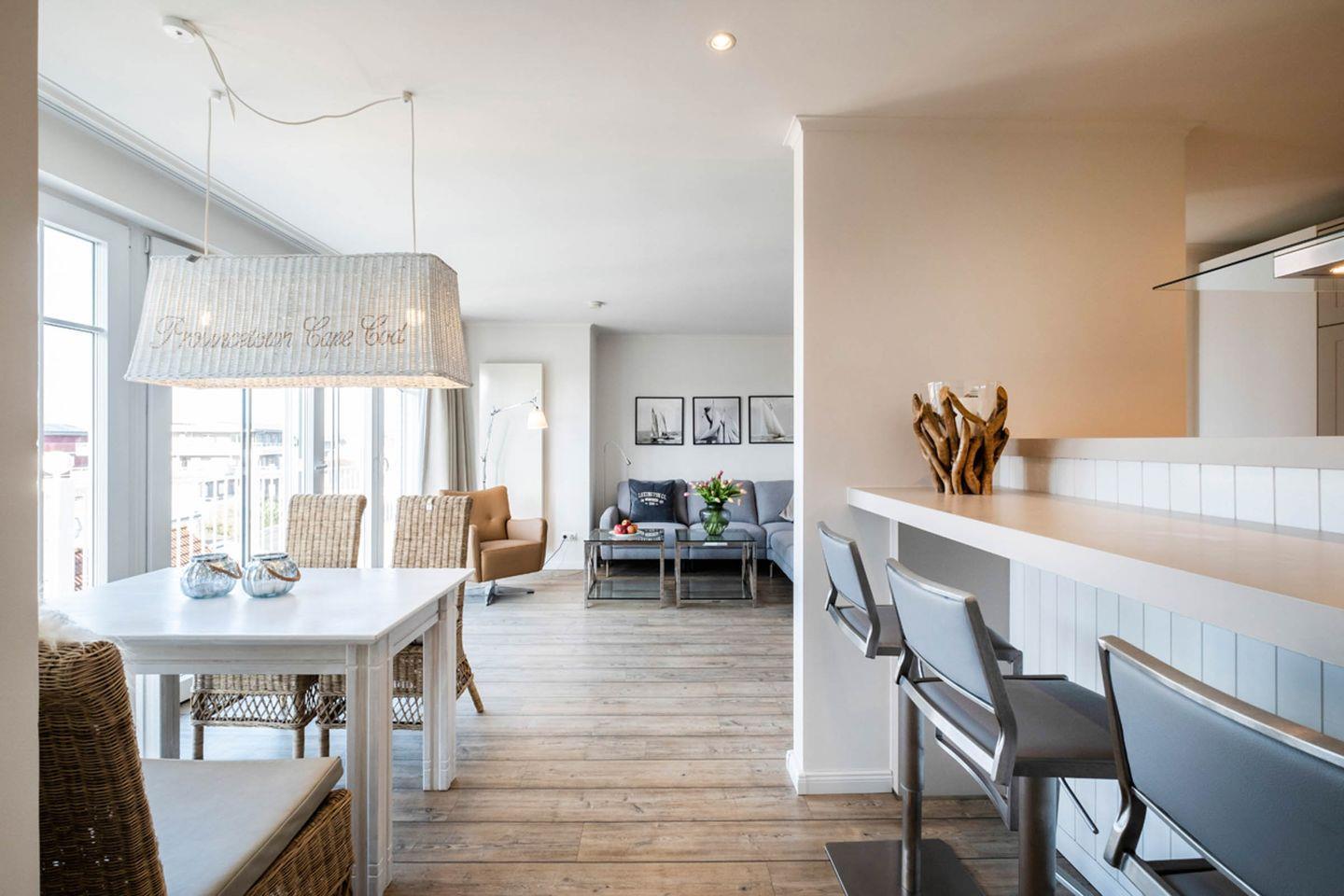 Das 90 m² Apartment ist geeignet für bis zu 4 Personen und befindet sich in dem Haus "Weisse Villa" direkt am Büsumer Hafen.