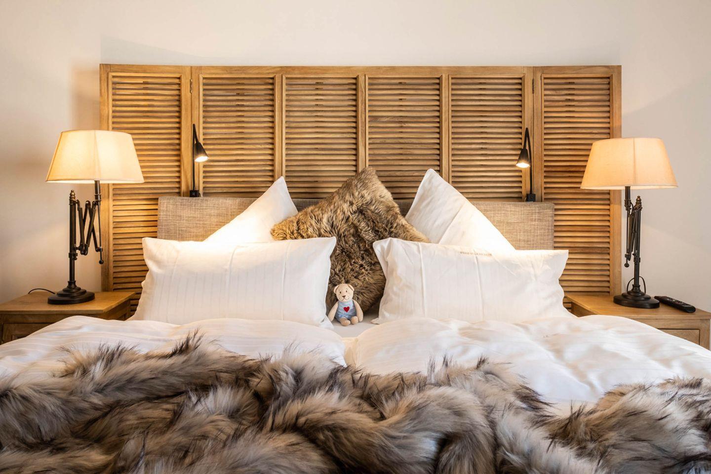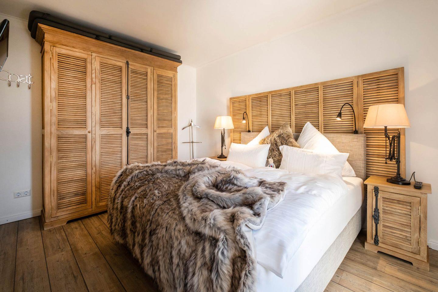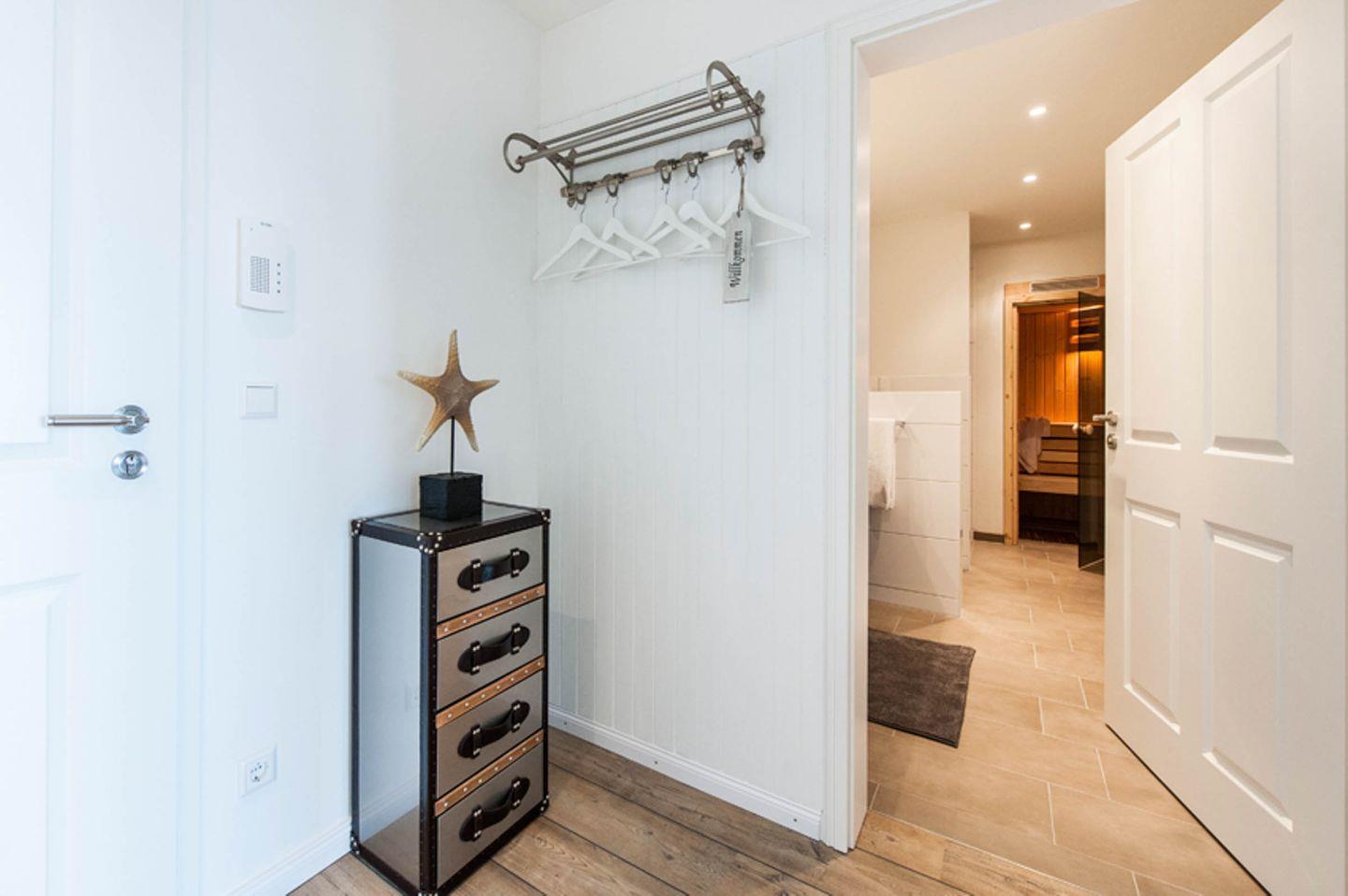 Aufgeteilt ist das Apartment in einen großzügigen Wohn- und Essbereich mit offener Küche, zwei Schlafzimmer und zwei großzügige Bäder. Ein Highlight des Apartments ist die Sauna im eigenen Badezimmer.