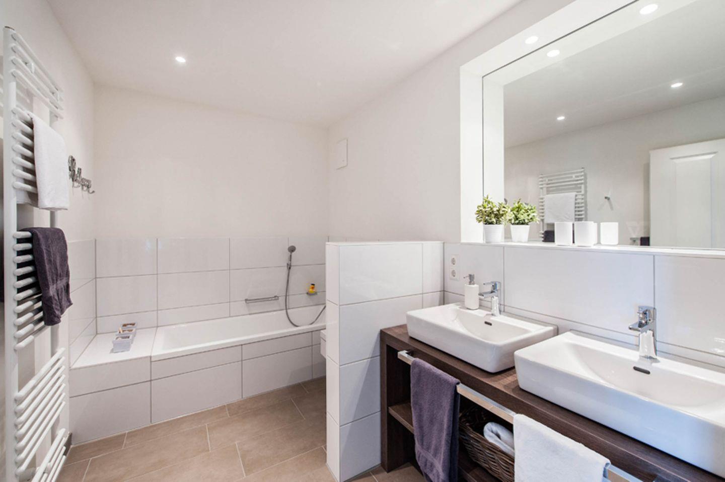 - 2. Bad: Badewanne, Doppelwaschtisch, Föhn, Kosmetikspiegel, Handtuchwärmer