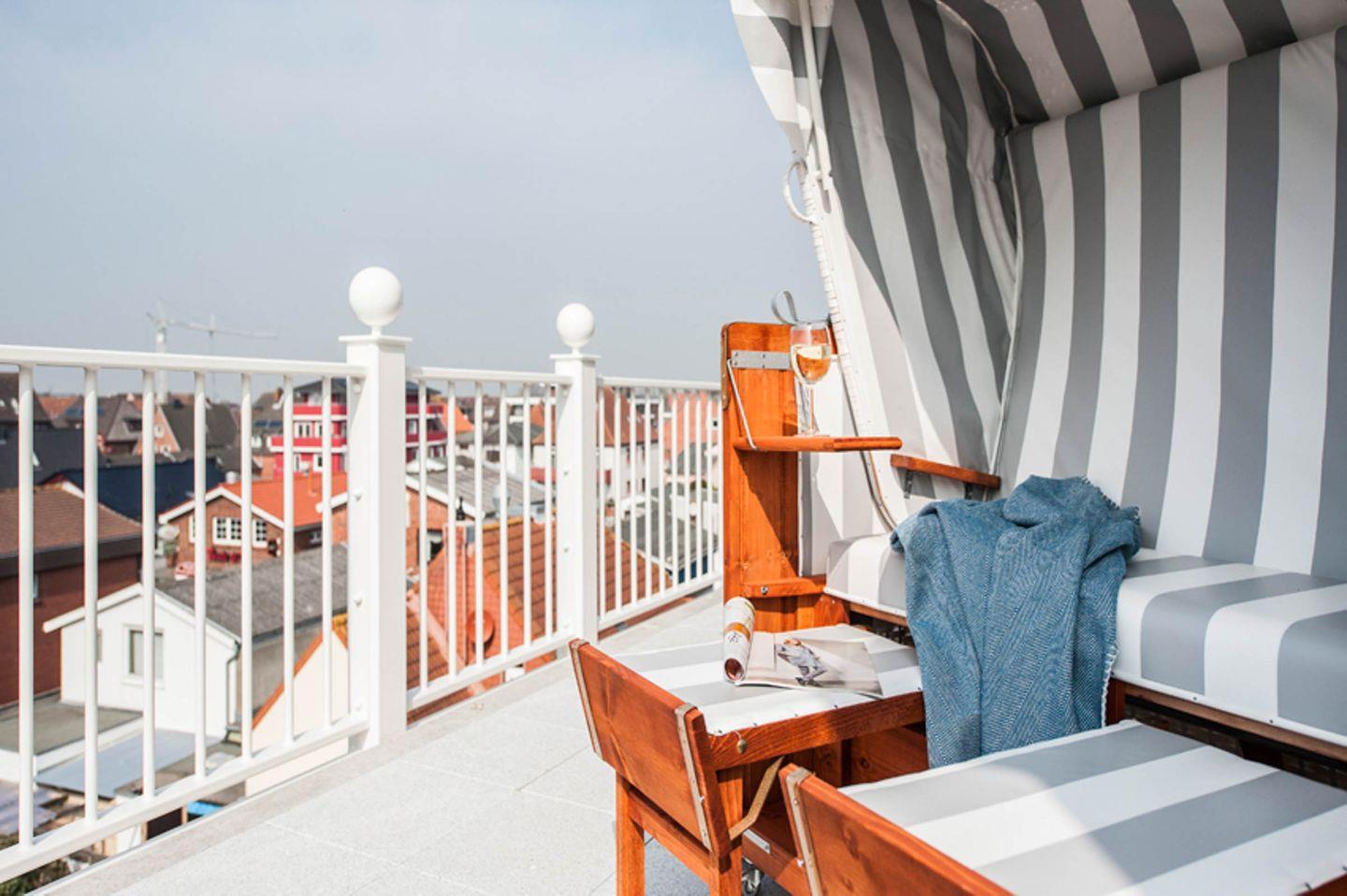 In der 3. Etage befindet sich die zum Apartment gehörige Dachterrasse mit Strandkorb.