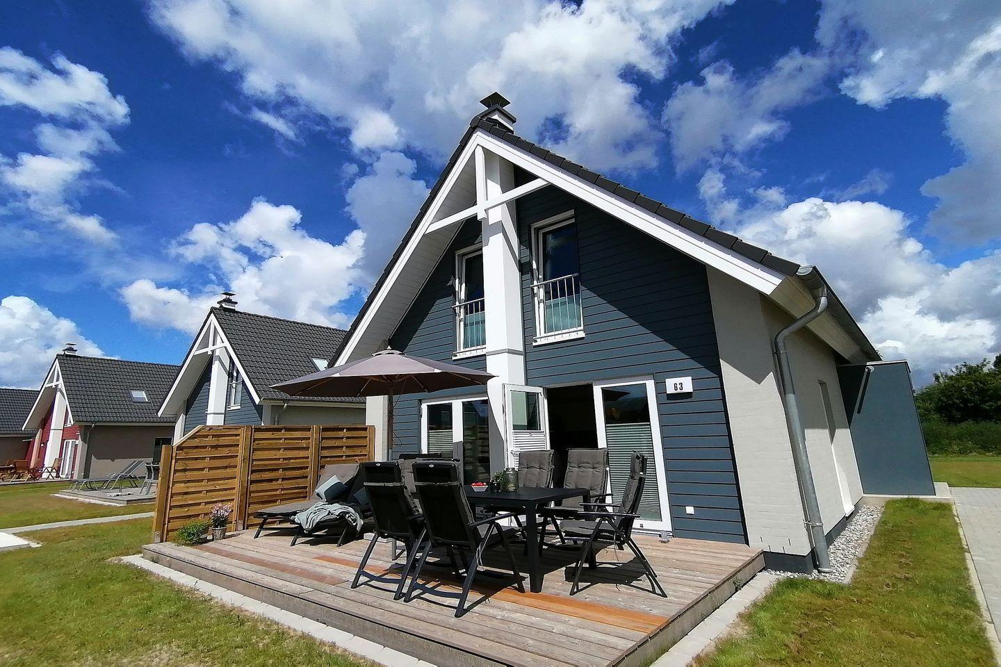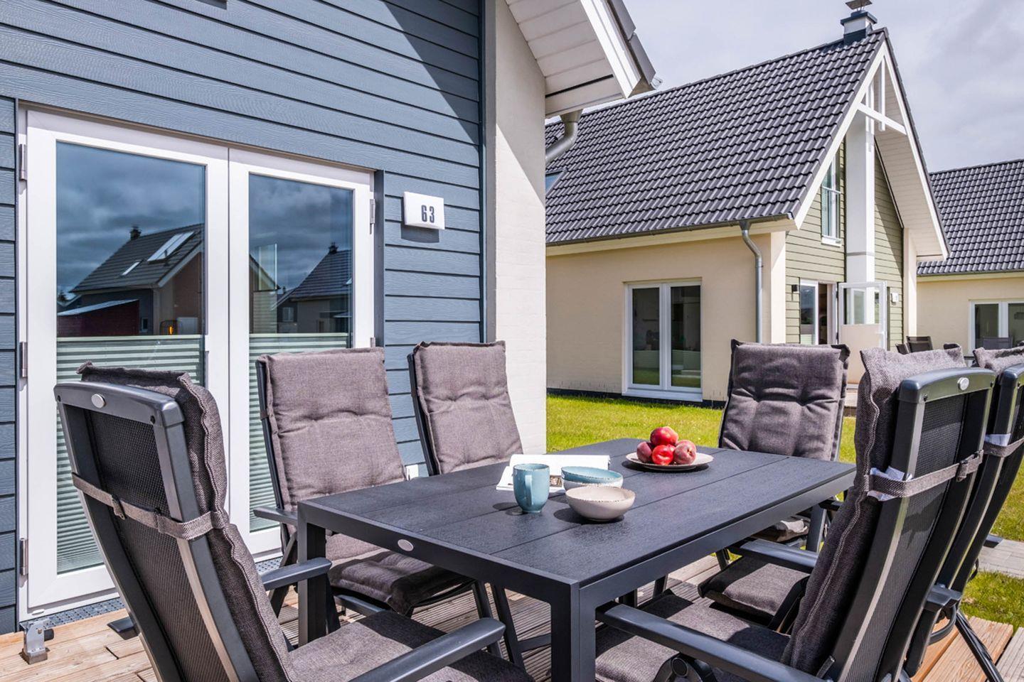 Das NordseeResort Büsum Ferienhaus 63 bietet modernen Komfort mit Sauna, Kamin und Nähe zum Strand für bis zu 6 Personen.
