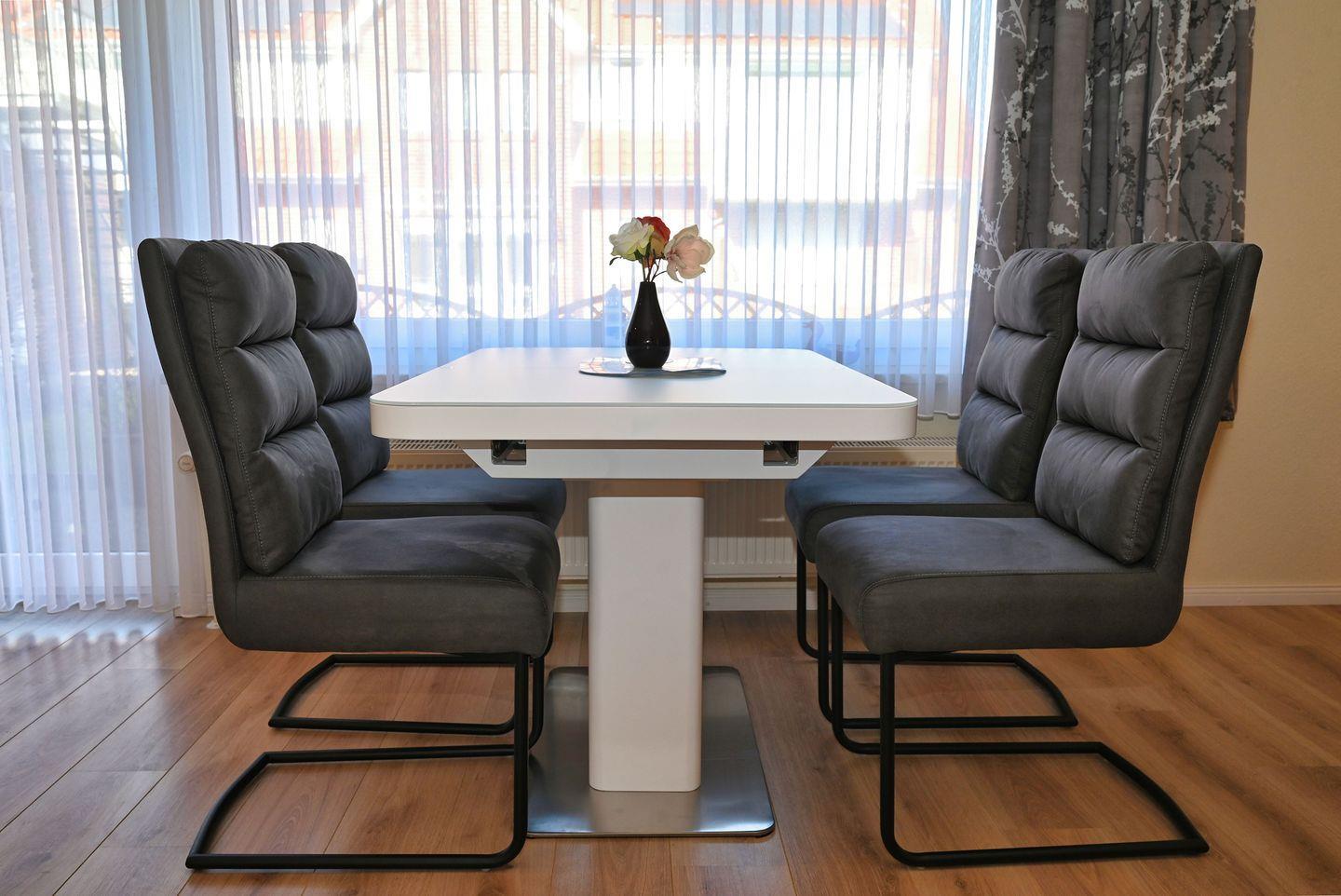 Im gemütlichen Wohn- und Essbereich mit offener Küche kommen Sie nach einem aufregenden Küstentag zusammen, können gemeinsam kochen, die Füße hochlegen oder einen Film schauen.