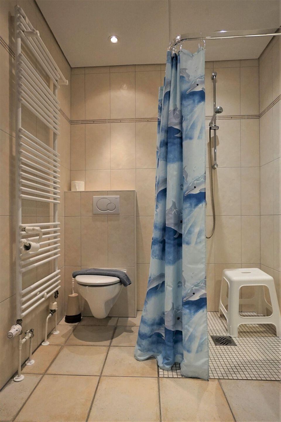 zusammen geschoben sind, gelangen Sie auf die Terrasse. Das Duschbad mit ebenerdiger Dusche ist für gehbehinderte bequem nutzbar. Für die Verdunkelung sorgen Außenjalousien an den Fenstern.