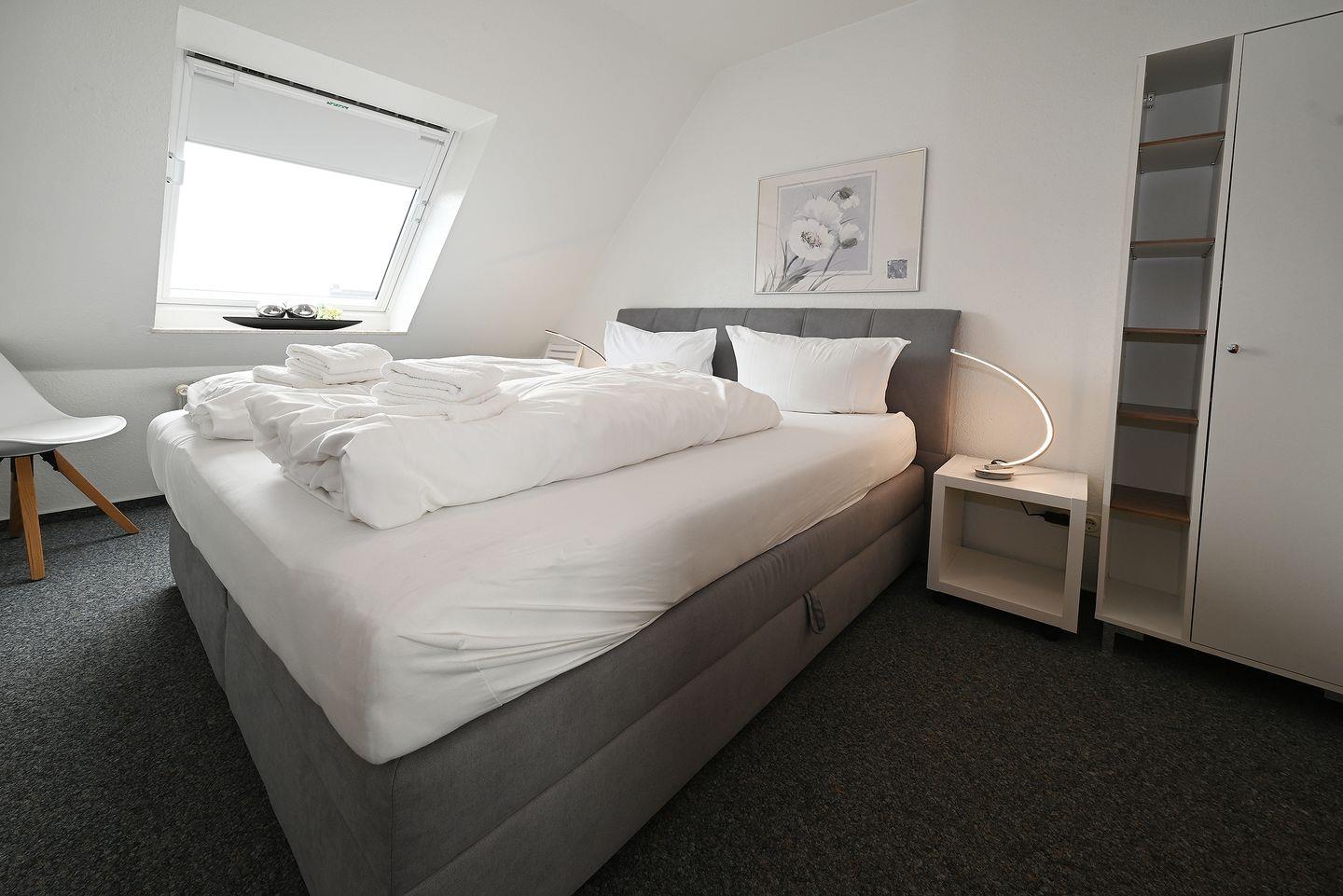 Der Fahrstuhl bringt Sie von der Tiefgarage direkt zur Wohnungstür. Sie befindet sich in der 2. und 3. Etage der Seemeile. Zwei großzügig geschnittene Schlafzimmer mit je einem Doppelbett und 1 Schlafsofa eignet sich perfekt für Familien mit 3 Kindern. Ebenfalls bietet die Wohnung zwei Duschbäder - sodass der Tag entspannt starten kann. Die Nachmittags- und Abendsonne können Sie auf dem Balkon genießen der mit Terrassenmöbeln ausgestattet ist. So lässt es sich gut entspannen!