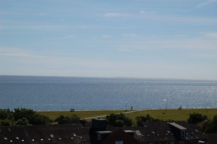 Sie befindet sich unterhalb des Deiches am Kurpark. Auf dem Balkon mit Blick über den Deich, können Sie die Sonne in den frühen Abendstunden in vollen Zügen genießen.