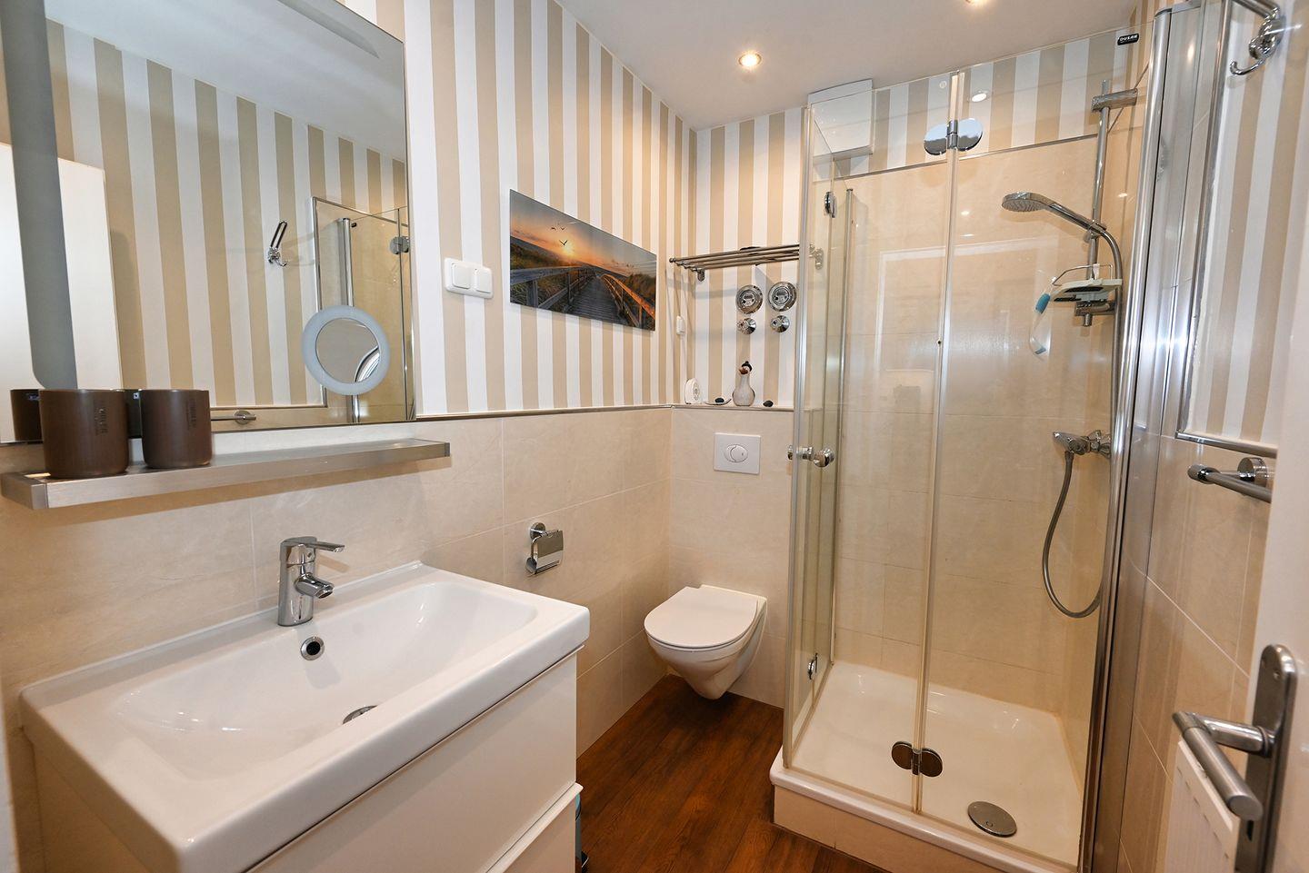 Die komfortable Ferienwohnung ist ausgestattet mit einer separaten Küche und einem Duschbad.