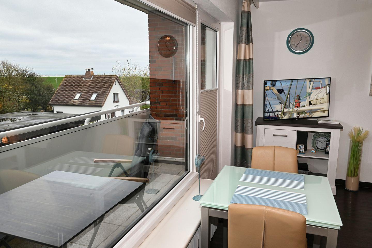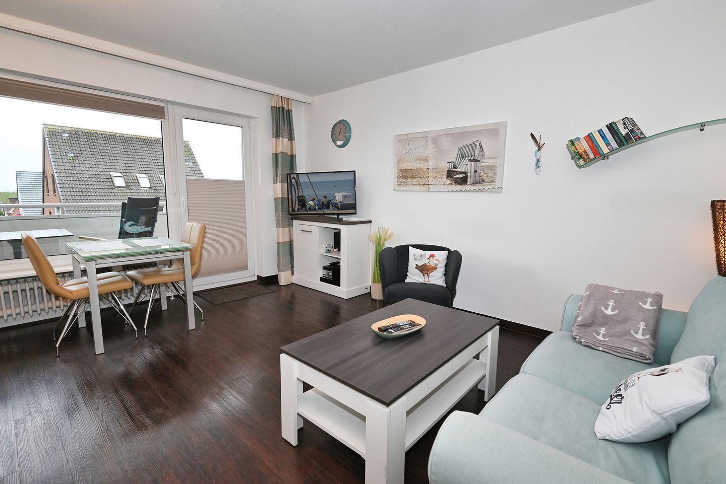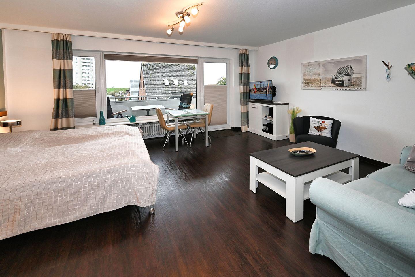 Stilvolle 1-Zimmer-Ferienwohnung mit Balkon und seitlichem Meerblick an der Familienlagune in Büsum.