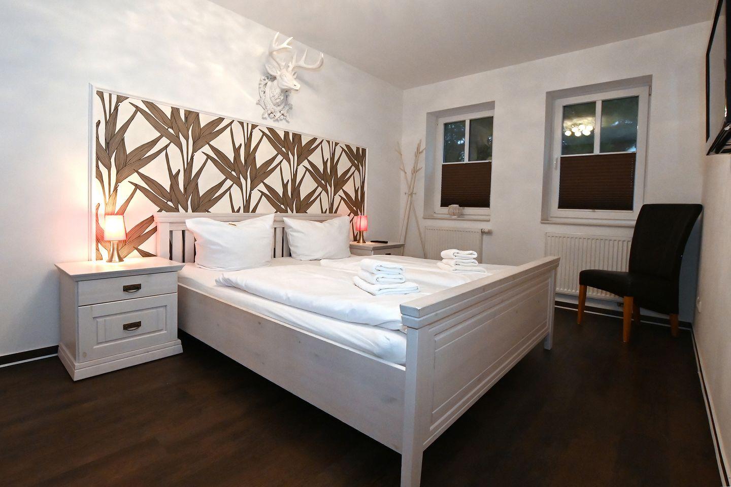 Die Wohnung verfügt über ein Schlafzimmer mit einem Doppelbett.