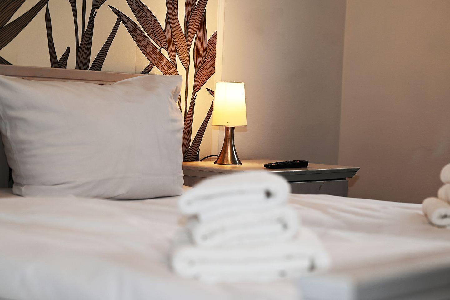 Die Penthouse Wohnung ist ausgestattet mit zwei Schlafzimmern mit jeweils einem Doppelbett.