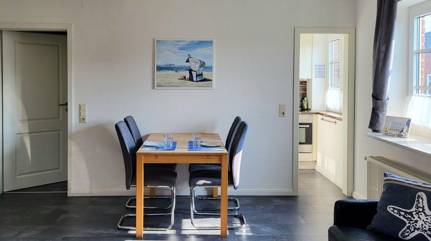 Die 42 Quadratmeter große 2-Raum-Wohnung befindet sich direkt im Zentrum von Büsum und bietet Platz für bis zu zwei Personen.