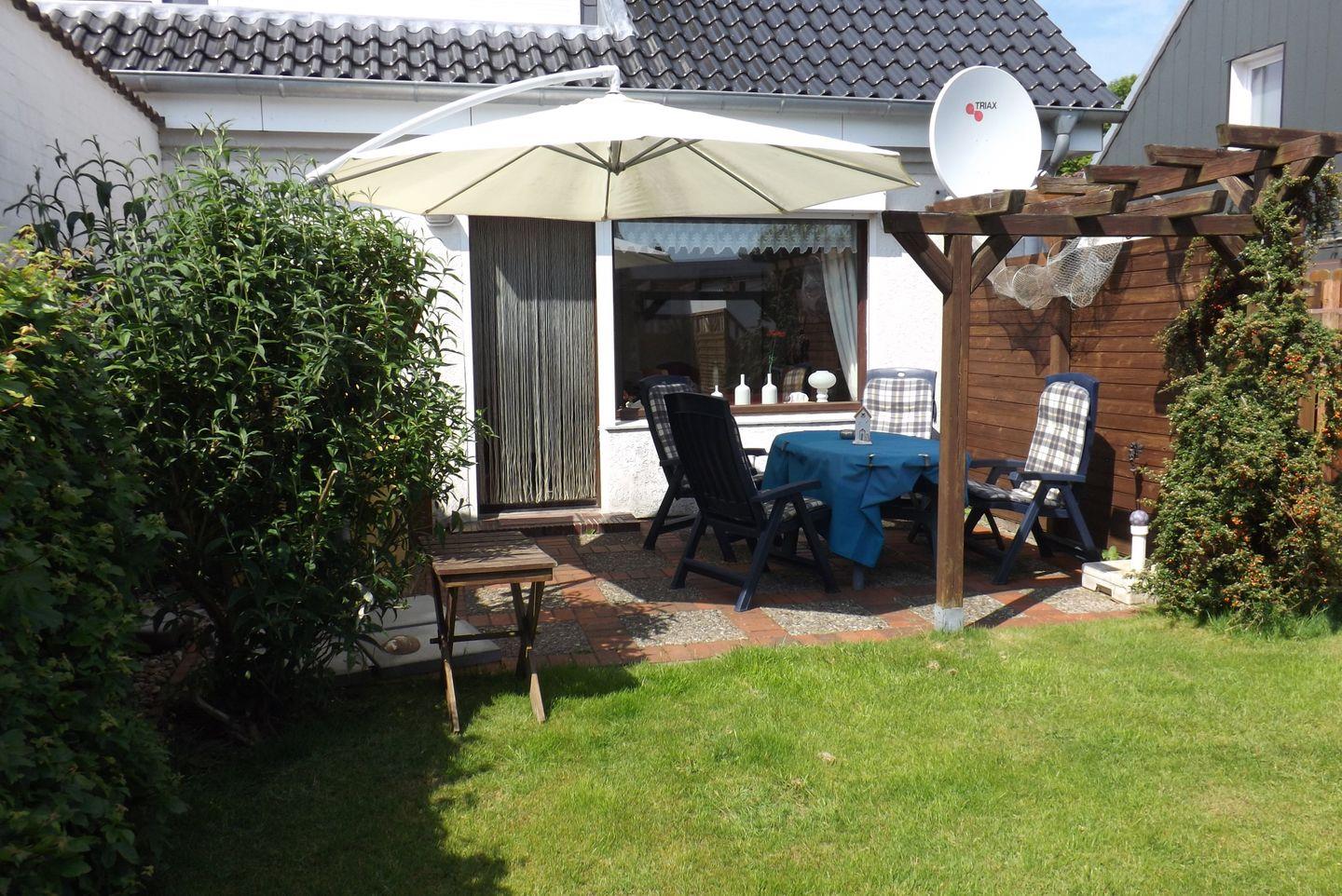 Gemütliches Ferienhaus Reinhard in Büsum mit Garten, Terrasse und Strandkorb für erholsamen Nordseeurlaub.