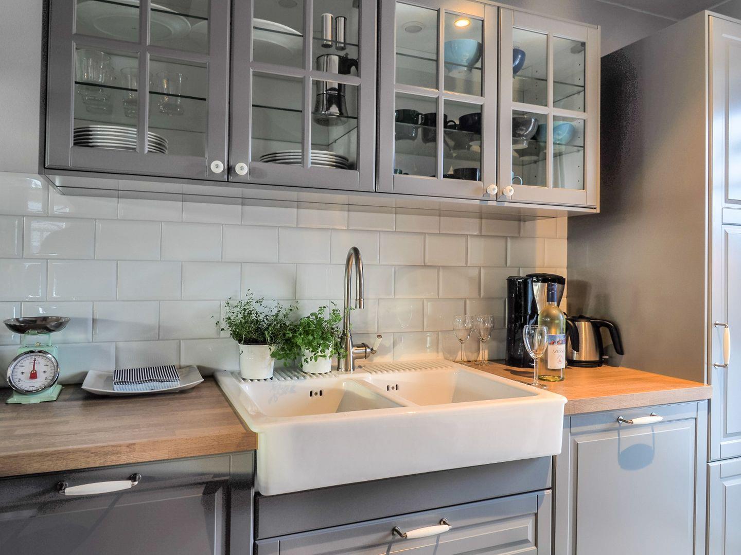 Die Küchenzeile ist mit hochwertigem Kücheninterieur ausgestattet.