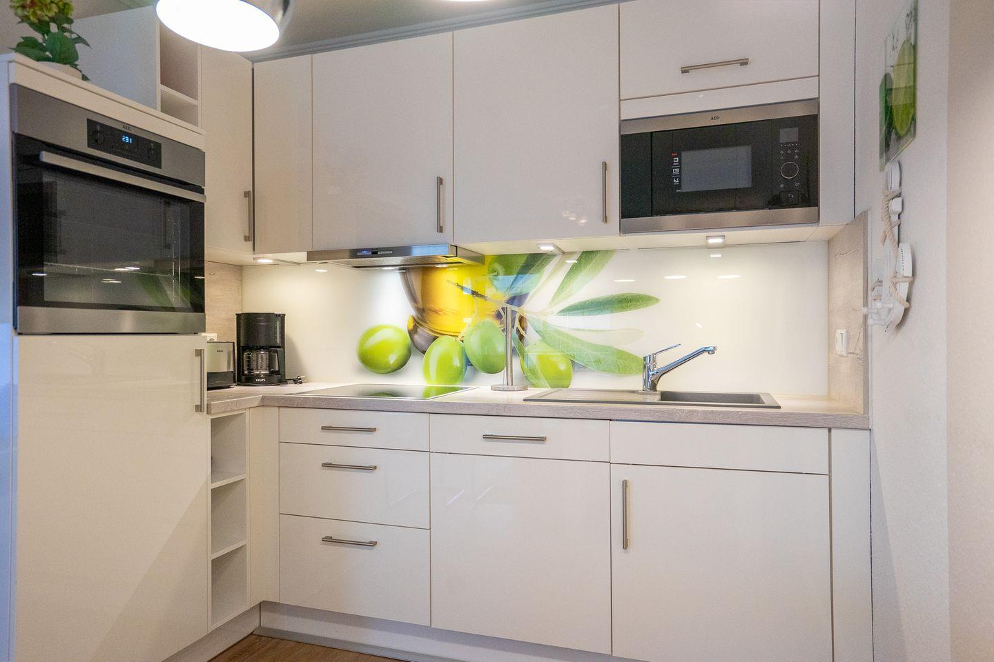 Die ca. 45 qm große 2-Raum-Wohnung befindet sich im 1. Obergeschoß der Seemeile. Auf dem Balkon können Sie die Nachmittags-und Abendsonne in vollen Zügen genießen. Zum Entspannen lädt auch der 50 Zoll Panasonic 4K Ultra-HD TV im Wohnzimmer ein.
