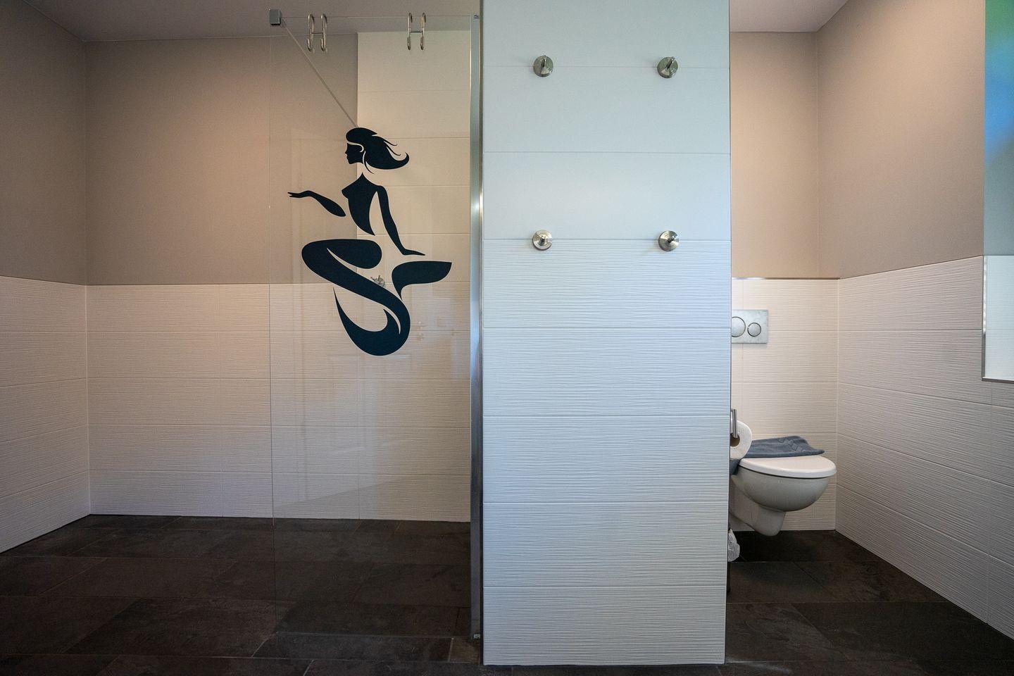 Sie finden zwei Bäder mit ebenerdiger Dusche und ein Gäste-WC in unserer Wohnung.