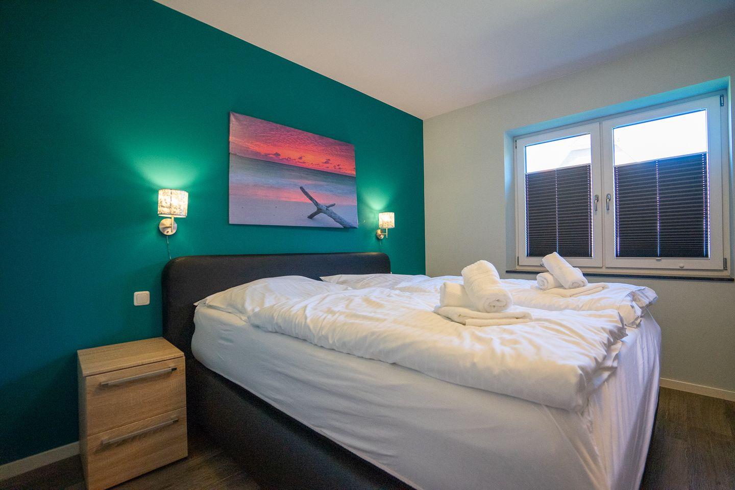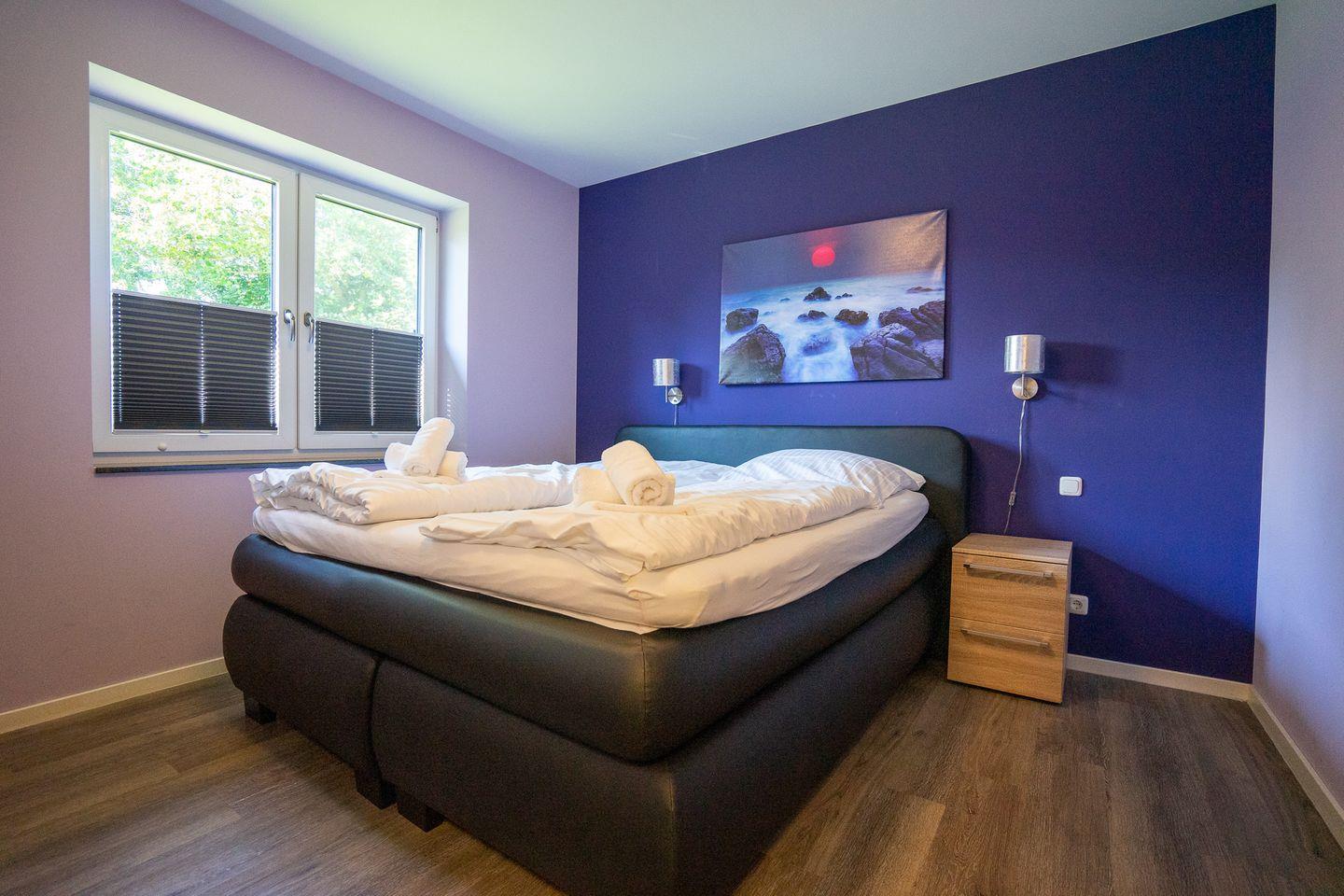 Es gibt drei Schlafzimmer mit Doppel-Boxspringbetten und je einem eigenen TV Gerät mit Internetzugang.
