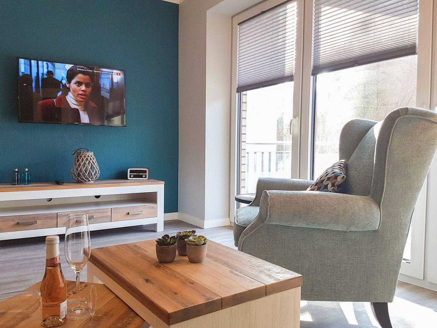Modernes 2-Zimmer-Apartment mit Terrasse, Designer-Möbeln und Smart-TV in Büsum, nahe zum Stadtzentrum.