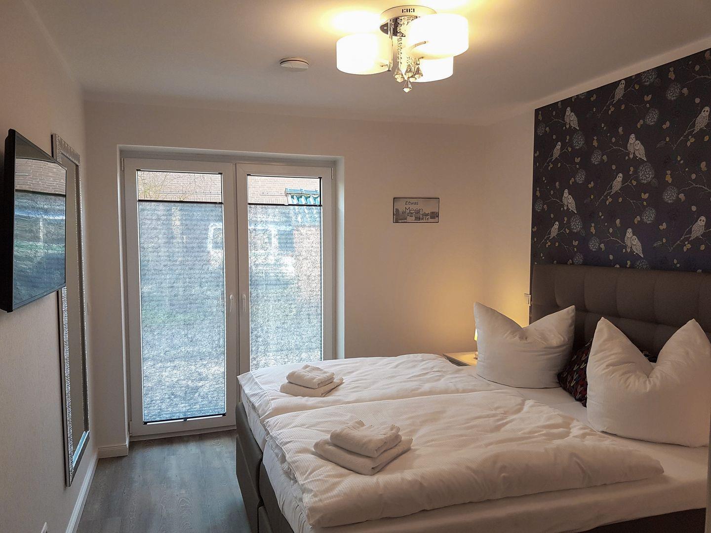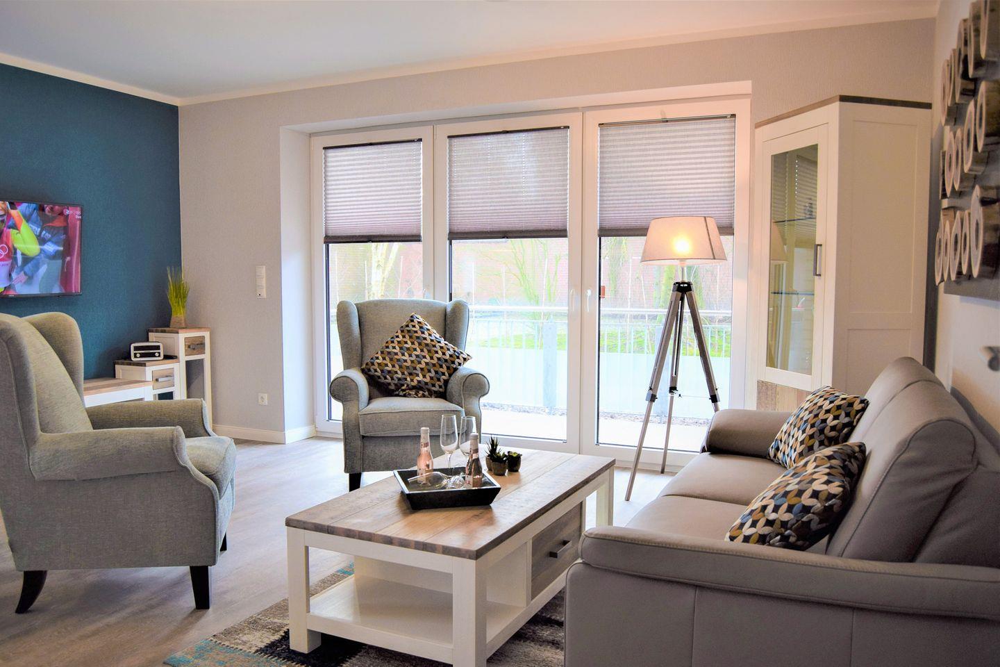 Modernes 3-Zimmer-Apartment mit Designer-Möbeln und Terrasse in Büsum, ideal zum Entspannen und Genießen.