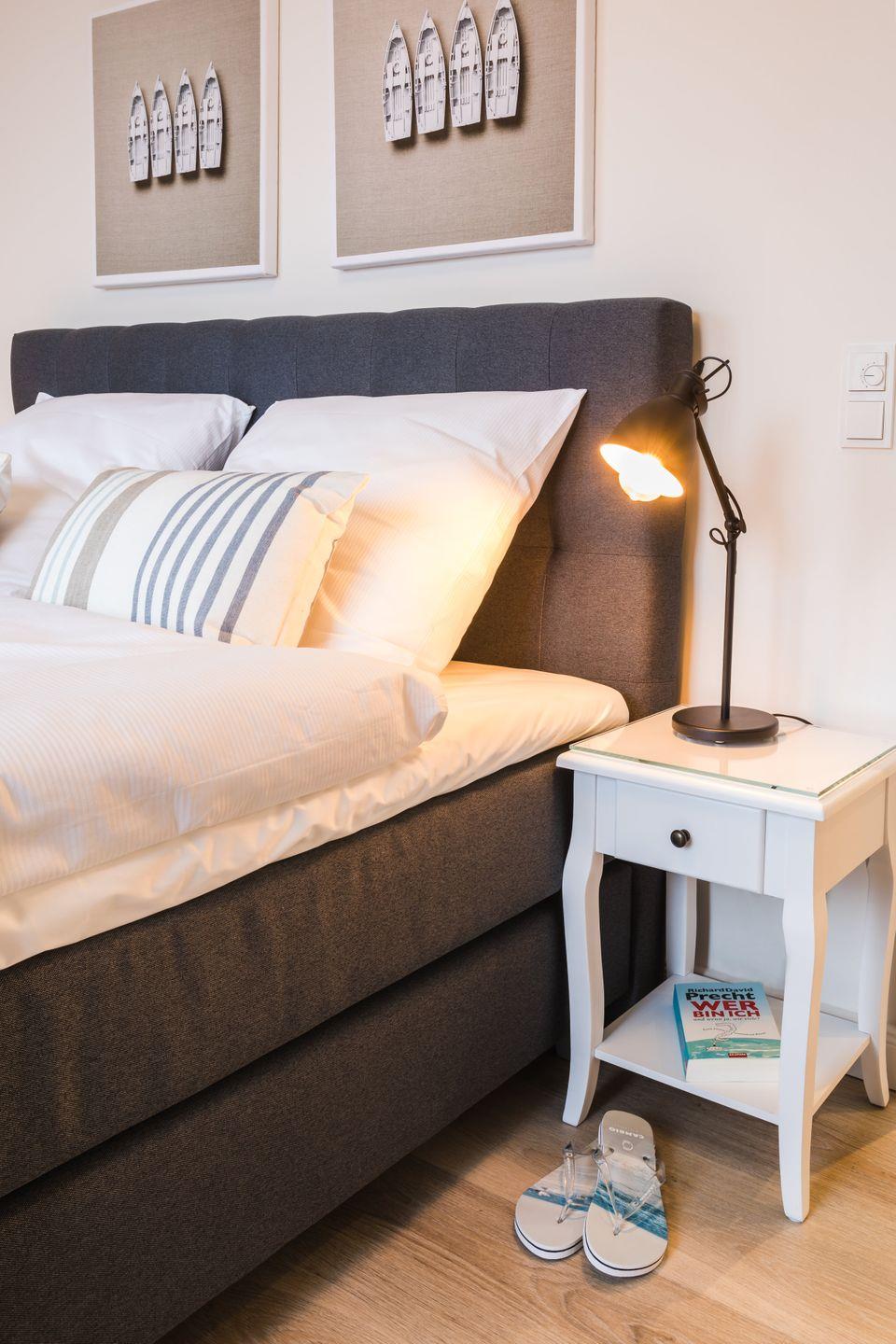 Die zwei Schlafzimmer bieten komfortable Boxspringbetten. Dem Wohnraum angeschlossen ist ein offener Küchen- und Essbereich, der zum gemütlichen Kochen und Beisammensein einlädt.