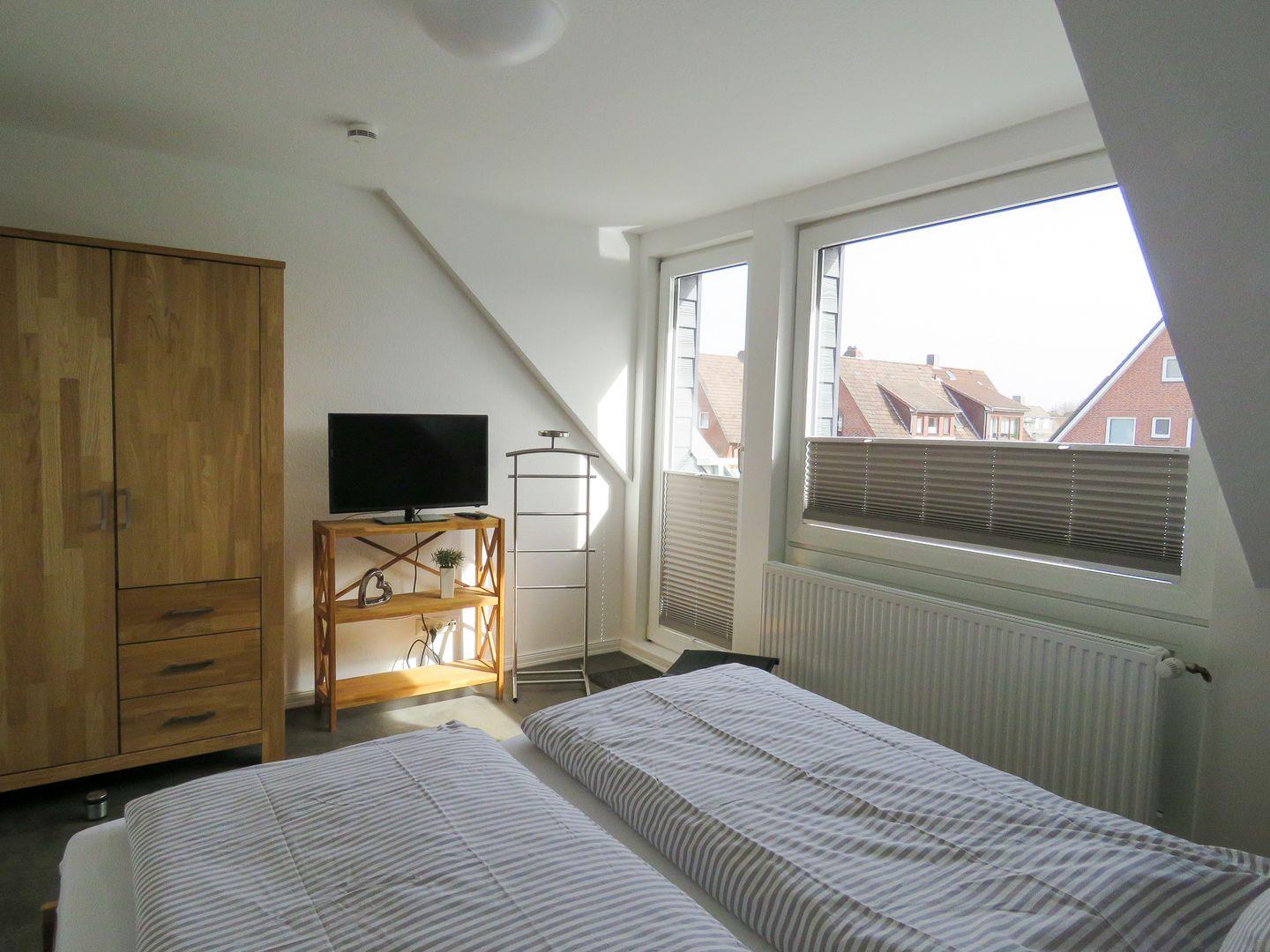 Zwei Balkone, 90 Quadratmeter Wohlfühlraum: Moin aus Ihrem neuen Urlaubsdomizil, gerade einmal 200 Meter vom Deich entfernt.