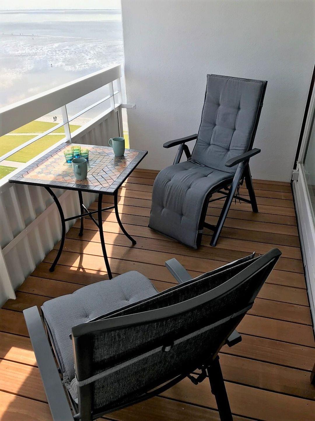 Moderne Ferienwohnung im 15. Stock mit Meerblick und direkter Lage am Deich in Büsum.