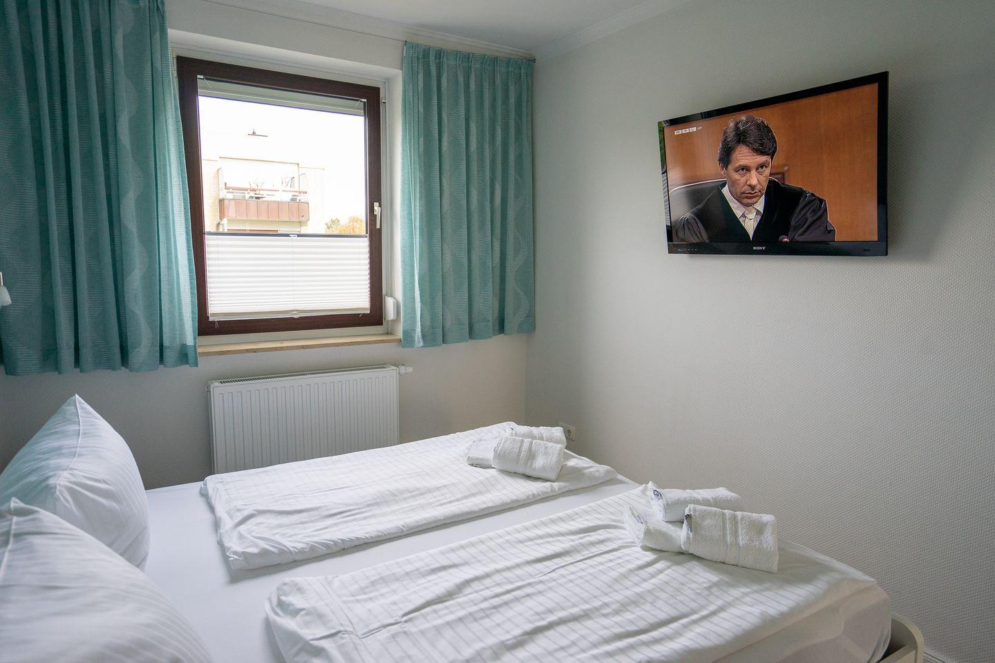 Ein weiterer Fernseher ist im Schlafzimmer vorhanden.