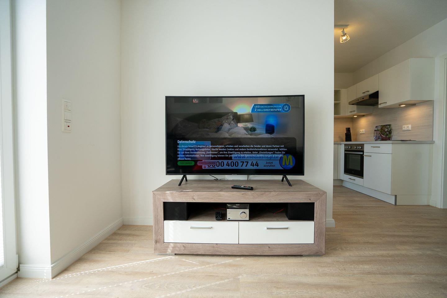 Die beiden Schlafzimmer verfügen über je ein Doppelbett. Eines der Schlafzimmer ist mit einem Fernseher ausgestattet.