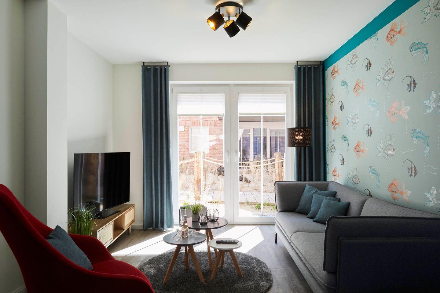 Modernes Dreizimmer-Apartment mit Designer-Möbeln, Fußbodenheizung und nur 100 m vom Strand in Büsum entfernt.