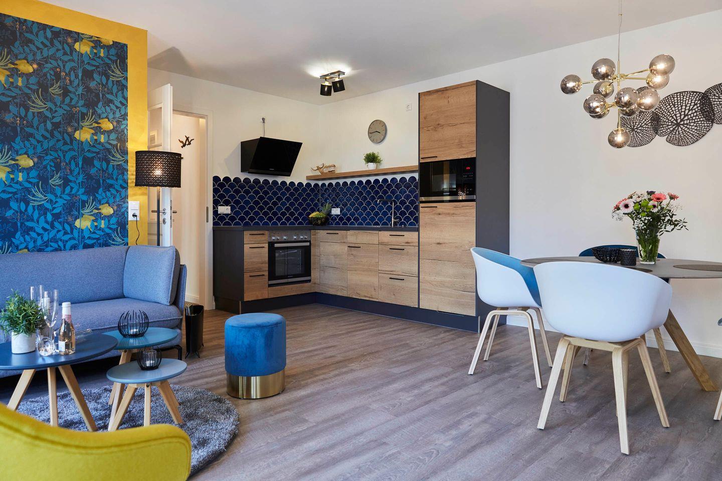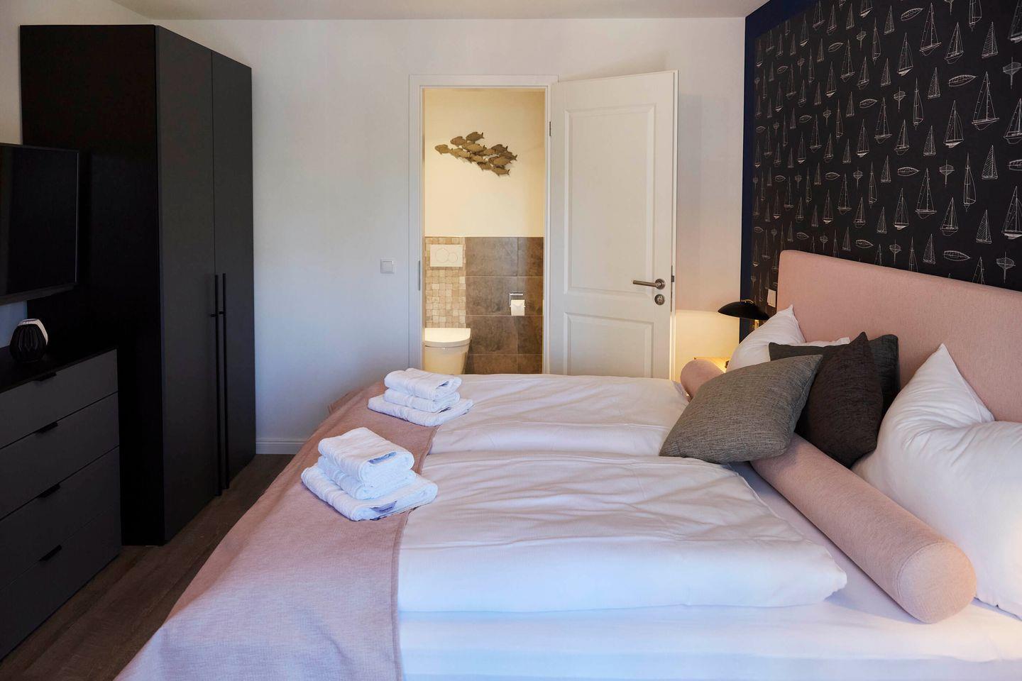 Modernes Apartment mit Designer-Möbeln, Fußbodenheizung und Wellnessbereich direkt am Meer in Büsum.