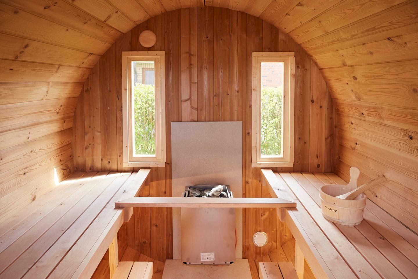 Weitere Highlights sind unter anderem die freistehende Badewanne , sowie das Saunafass (gemeinschaftlich) im Garten.