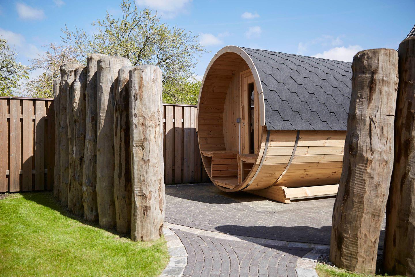 Weitere Highlights sind unter anderem die freistehende Badewanne im oberen Stockwerk, sowie das Saunafass (gemeinschaftlich) im Garten.