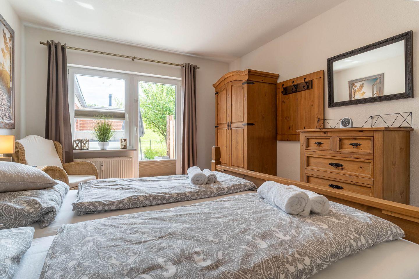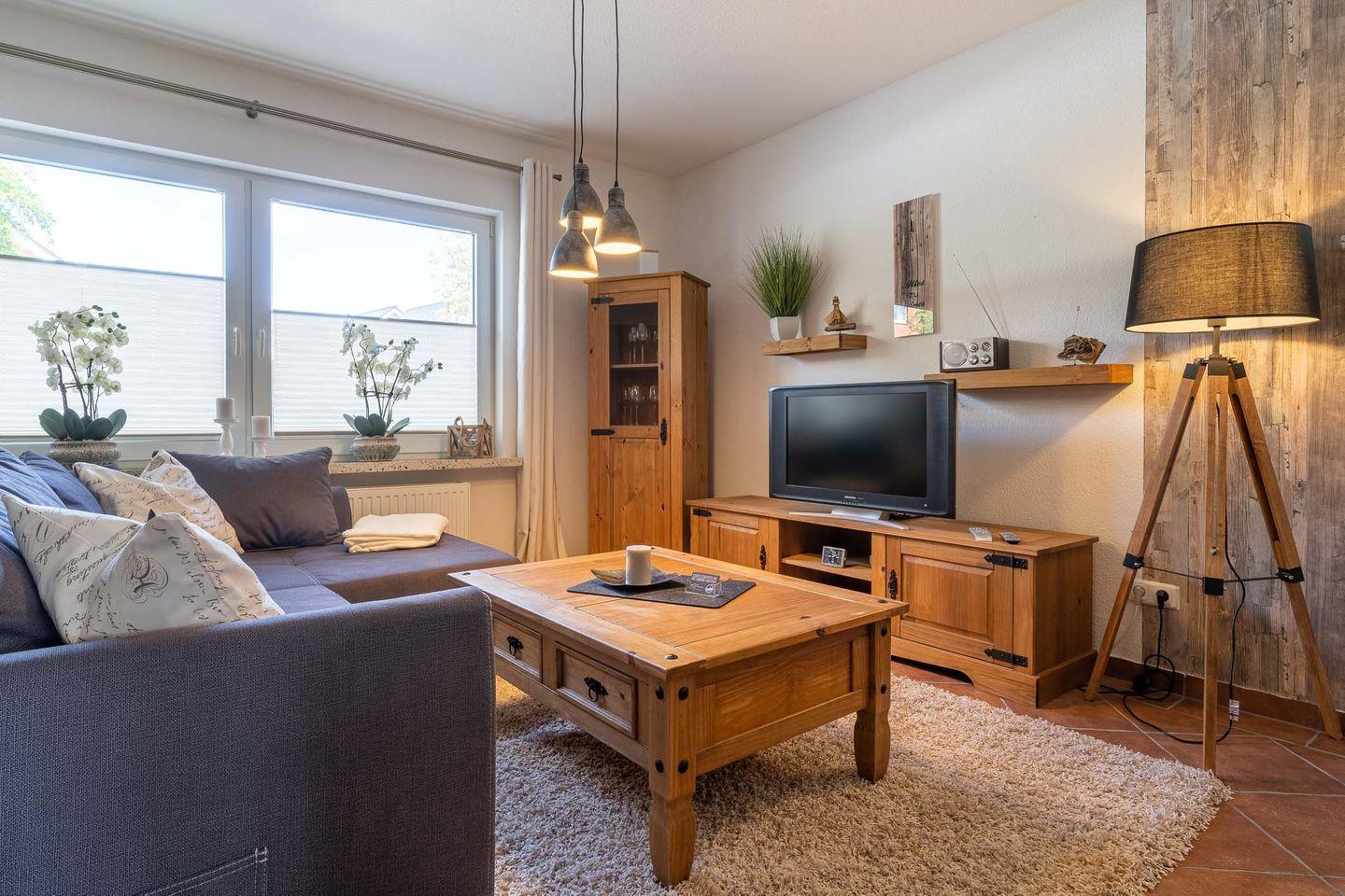 Die ca. 55qm große Erdgeschoss-Wohnung bietet ausreichend Platz für 2 Personen und einem Hund. Durch die Haustür gelangen Sie direkt in die große Wohnküche mit einem Schlafsofa und Essbereich. Das Schlafzimmer hat ein Doppelbett mit Zugang zur möblierten Terrasse. Im Duschbad gibt es ausreichend Platz für Ihre Utensilien. Ein öffentlicher Spielplatz ist direkt auf der gegenüberliegenden Strassenseite zu finden.