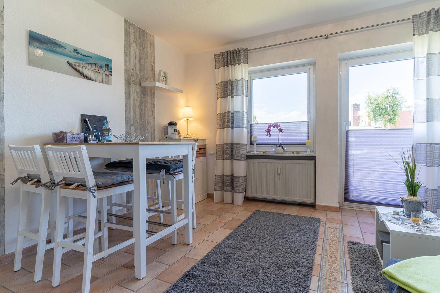 Gemütliche 2-Zimmer-Ferienwohnung in Büsum mit Terrasse, Nähe Strand und Zentrum, hundefreundlich, ideal für erholsamen Urlaub an der Nordsee.