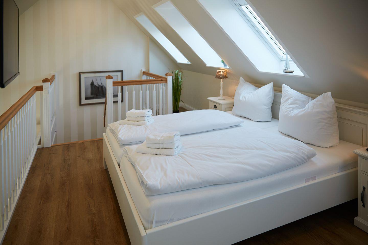 Neben dem Schlafzimmer bietet die offene Galerie zwei weitere Schlafgelegenheiten mit einem besonderen Ambiente.