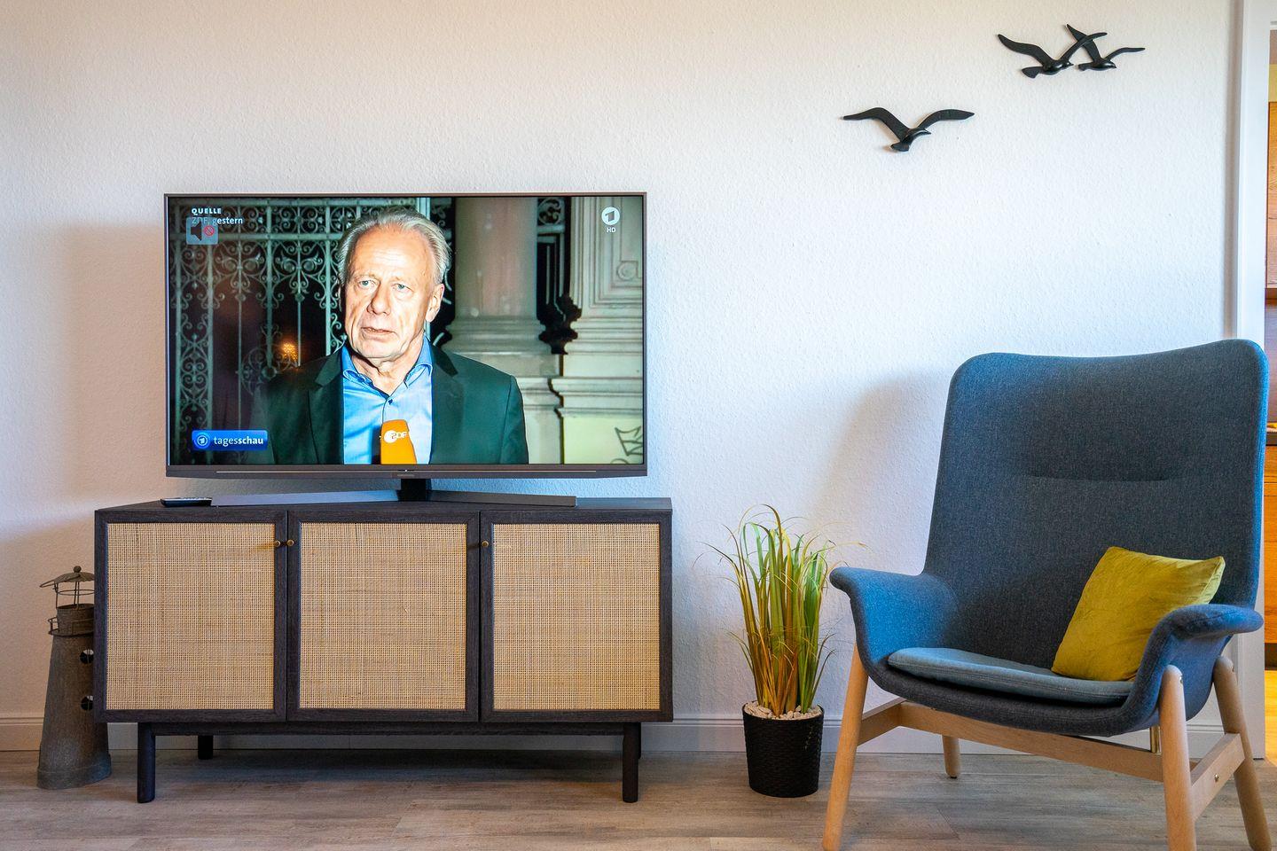 Hier finden Sie den 2. Smart-TV. Durch das Wohnzimmer gelangen Sie in die moderne Küche.