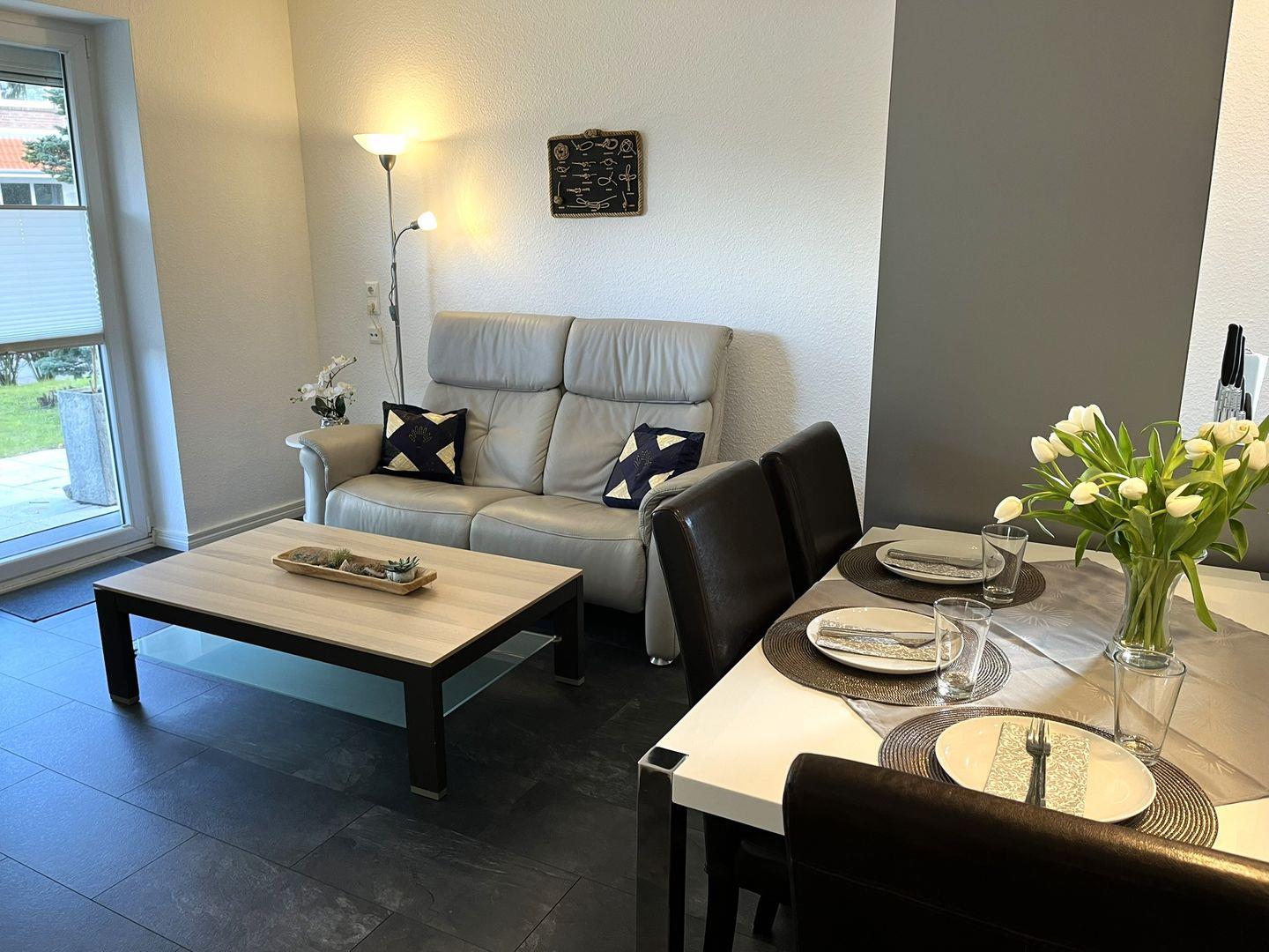 Im schicken Wohn- Essbereich erwartet Sie eine gemütliche, stilvolle Einrichtung. Auf der bequemen Couch können Sie entspannte Momente, bei einem Glas Wein, einem Film oder einfach nur so erleben.
