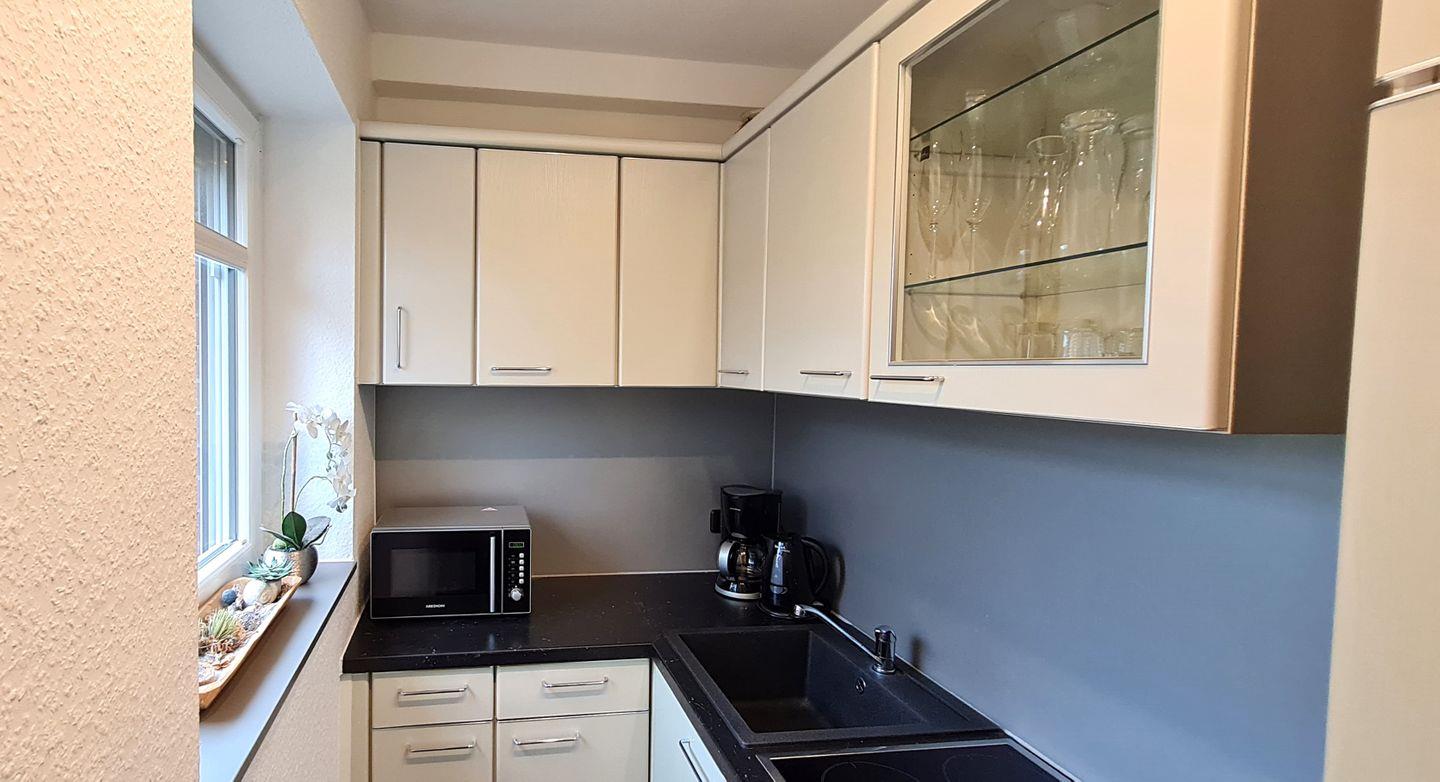 Die Küchenzeile ist komplett und modern ausgestattet, so dass man sich problemlos selber versorgen kann.