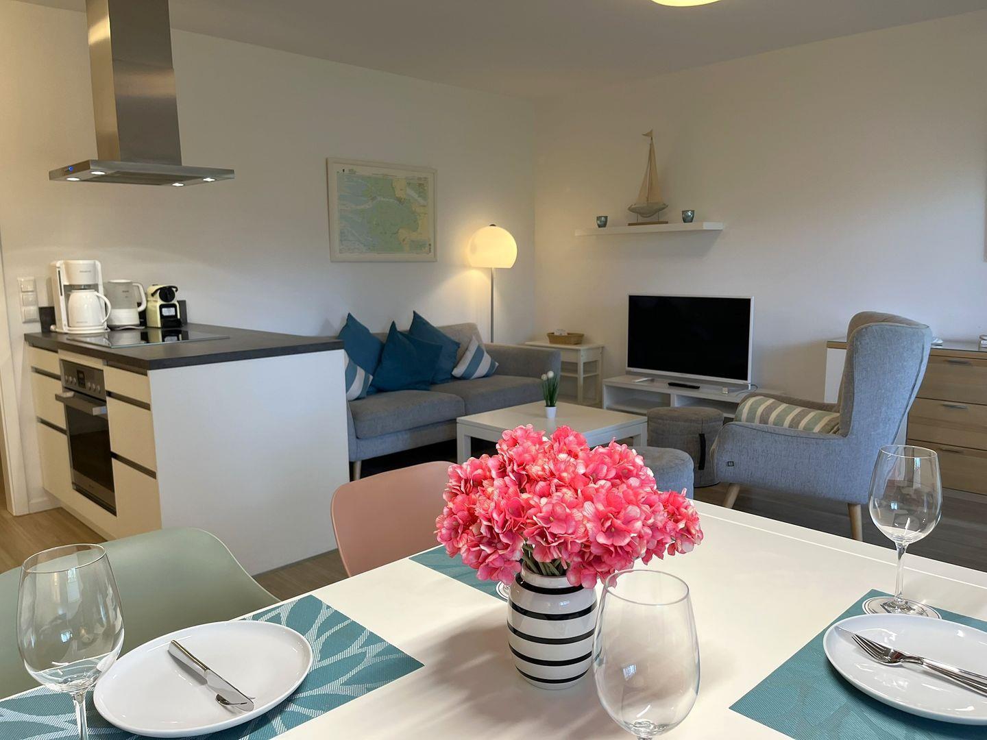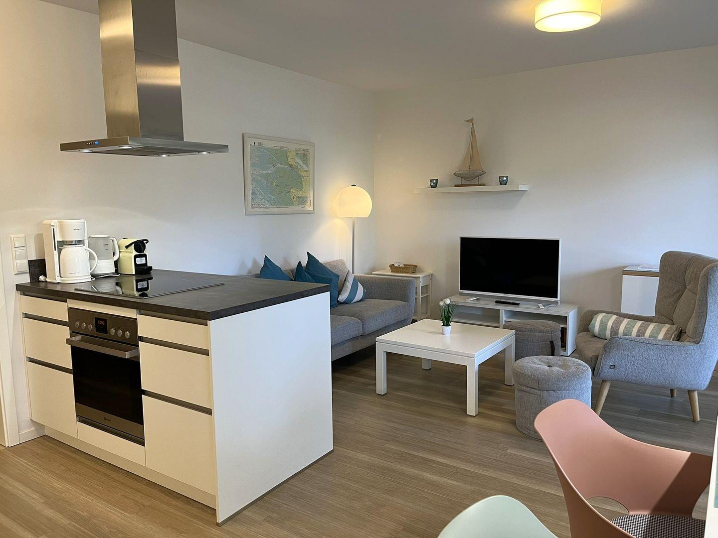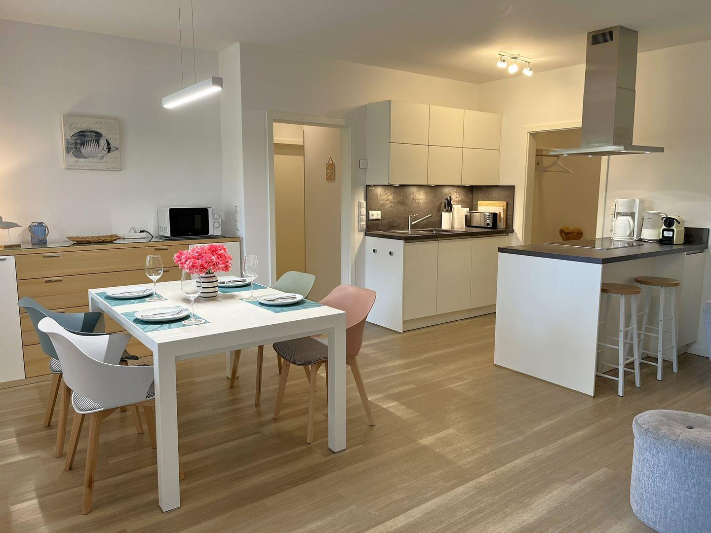 Moderne Ferienwohnung in Büsum mit Terrasse, Fußbodenheizung und WLAN für einen komfortablen Urlaub.