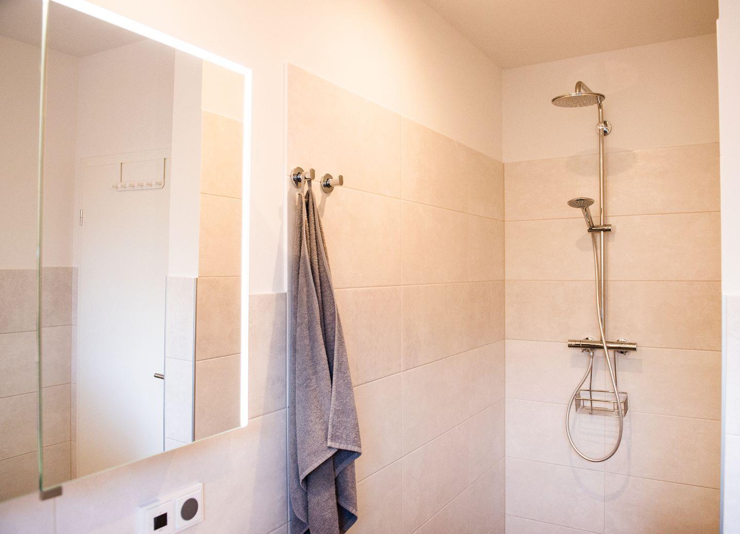 Gern werden Sie es sich auch auf der Couch bequem machen oder die Ruhe bei einem Film (TV WLAN-fähig) oder guten Buch genießen. Die Schlafzimmer bieten neben einladenden Betten (1 Schlafzimmer mit Doppelbett, mit 2 Einzelmatratzen und 1 Schlafzimmer mit 2 Einzelbetten) auch ausreichend Platz in den geräumigen Kleiderschränken. Wie in der ganzen Wohnung sind die Fenster mit Plissees und zusätzlich Außenjalousien bestückt. In den Schlafzimmern und im Bad sind Fliegengitter angebracht. Nach einer erholsamen Nacht sind Sie so wieder für einen neuen Urlaubstag bereit. Das elegante Tageslicht-Badezimmer mit WLAN Radio und geräumiger sowie bodengleicher Dusche macht den Start in den Tag und diese Ferienwohnung perfekt.