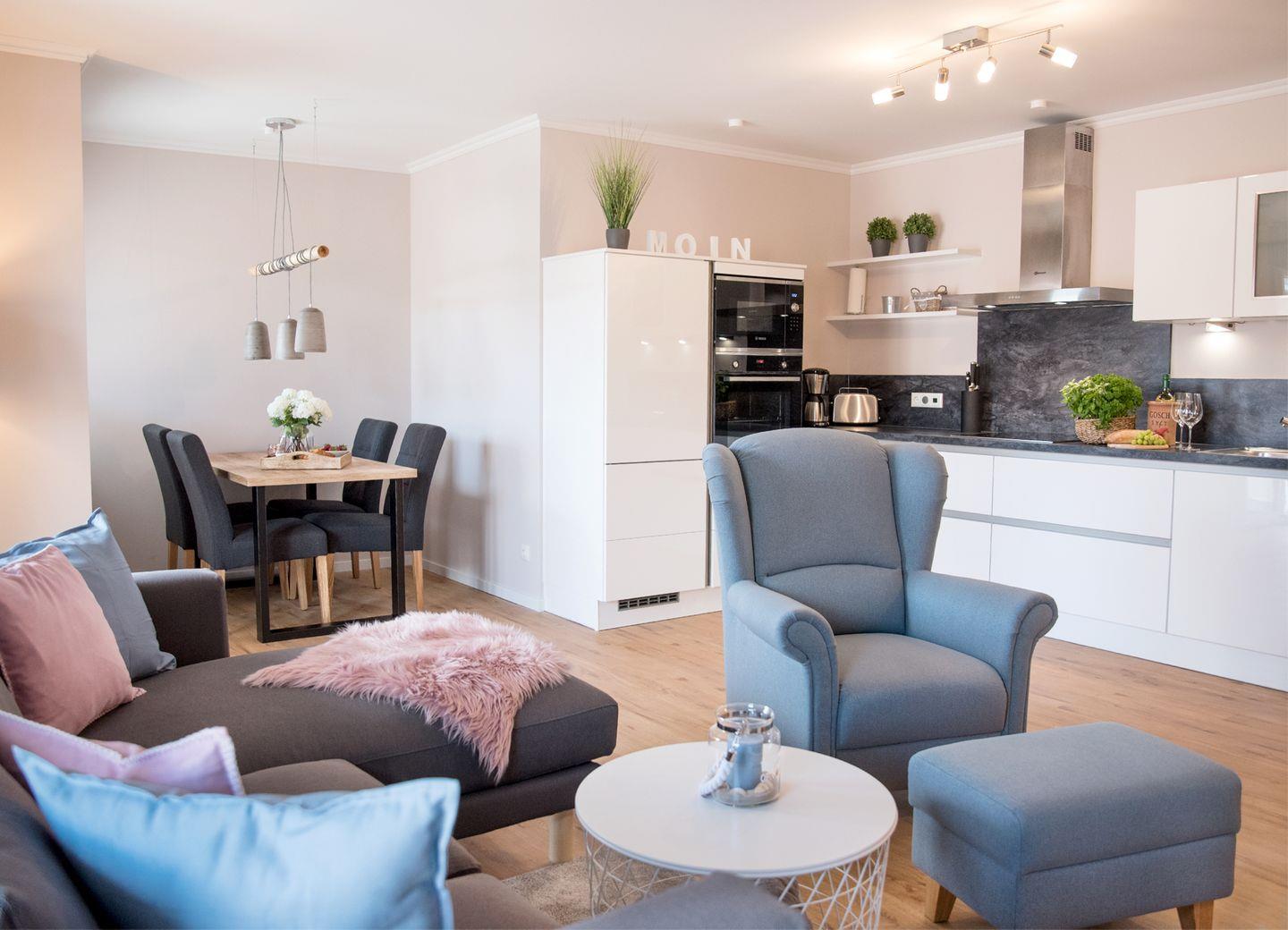 gerne nieder lässt. In der hochwertigen, komplett eingerichteten Küche, im Wohnraum, kann man sich komfortabel selber Verpflegen.