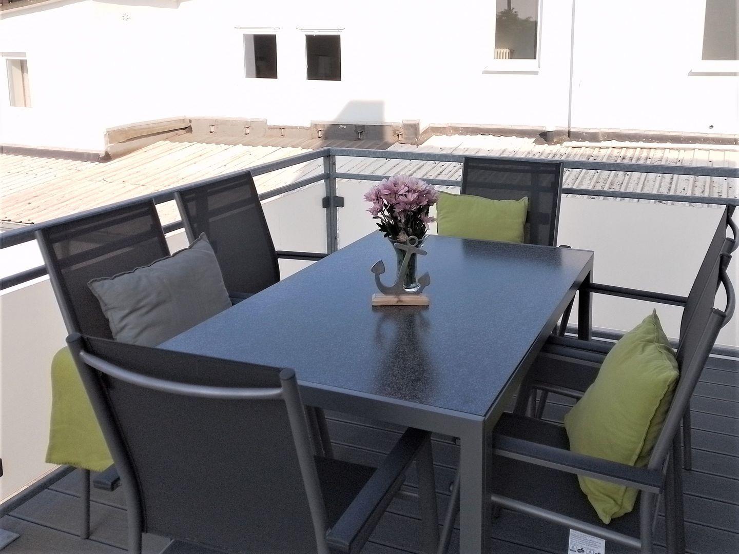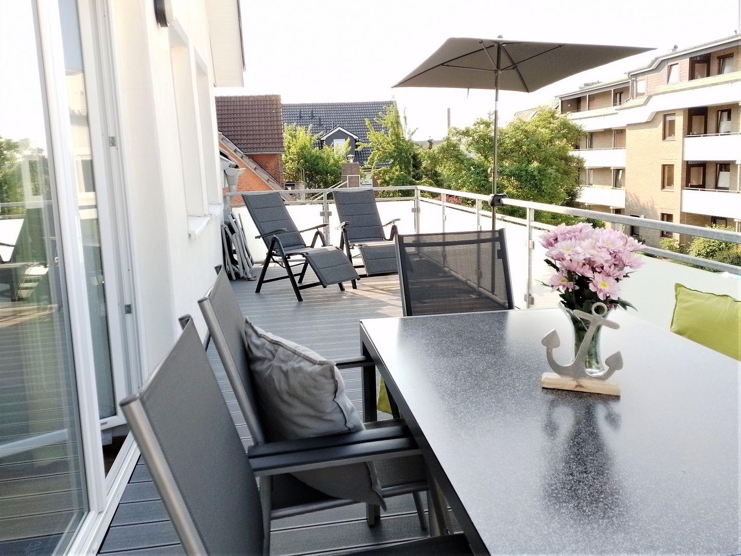 Moderne Maisonettwohnung im Zentrum von Büsum mit Balkon, voll ausgestatteter Küche und kostenfreiem WLAN für bis zu 6 Personen.