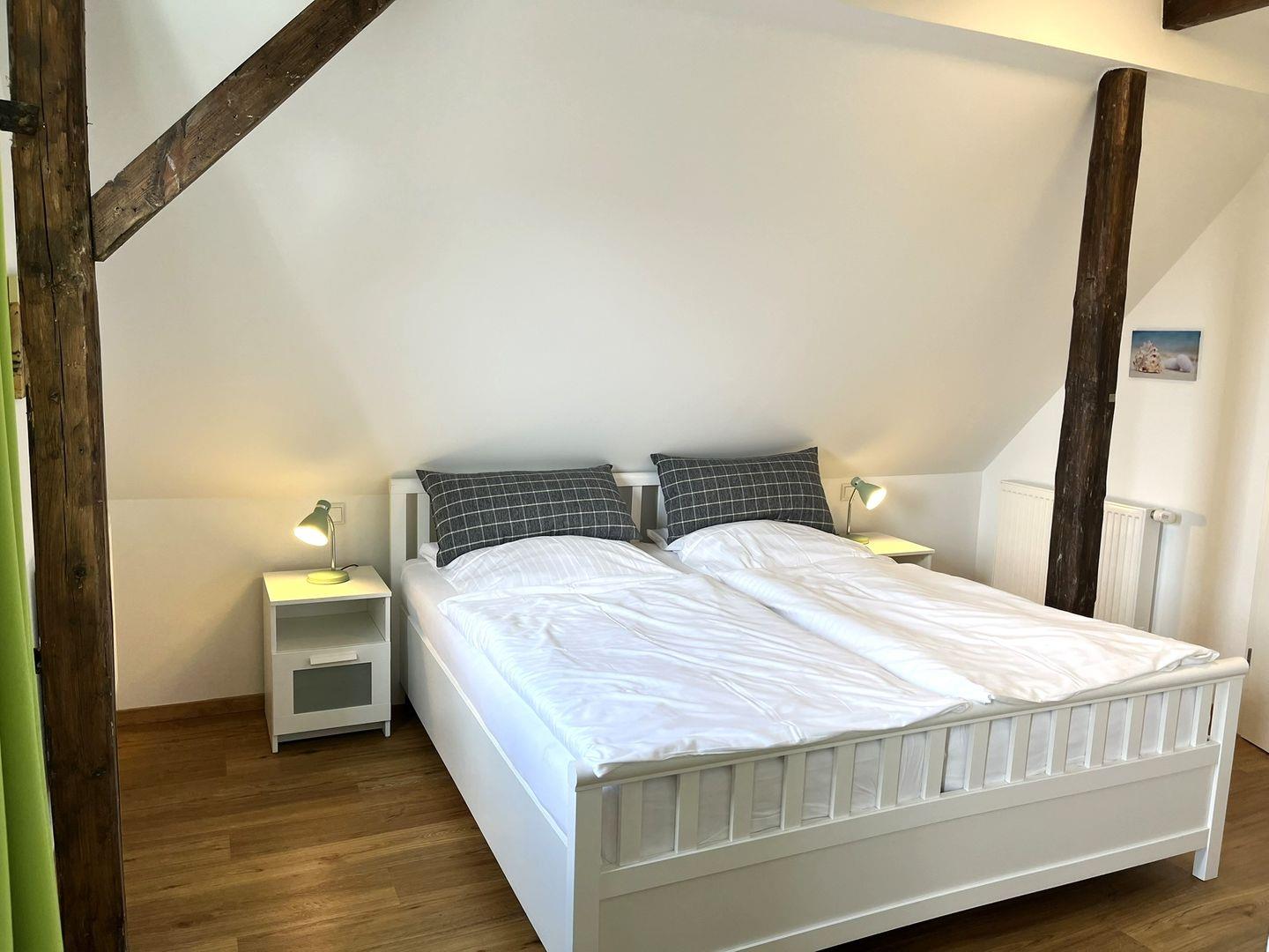 Drei weitere Schlafzimmer befinden sich in der 2ten Etage, eines mit Doppelbett (1,80x 2m mit 2 Einzelmatratzen) und 2 Schlafzimmer mit jeweils einem Bett, dass 1,40x 2m groß ist.